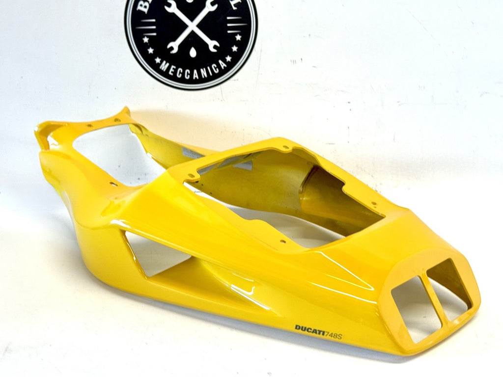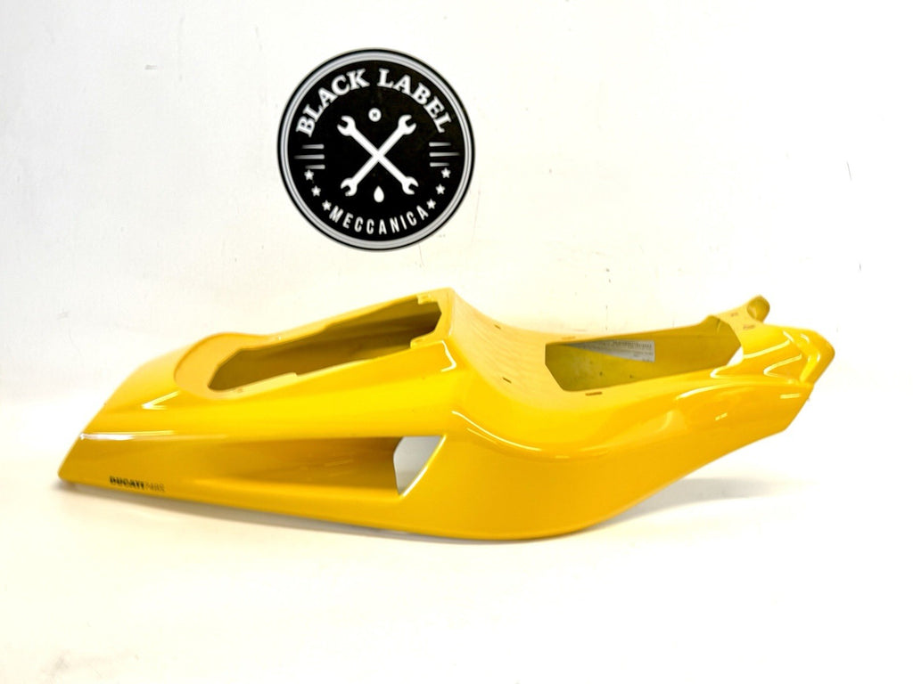 The Ducati 748 996 916 998 Biposto Tail Section Fairing Seat in Yellow (48310221A) is a high-quality ABS plastic rear fairing made in Italy by Ducati. This painted fairing is designed to provide a sleek and stylish look to your motorcycle while offering protection from the elements. With the manufacturer part number 48310221A, this fairing is a perfect fit for Ducati models and is sure to enhance the overall appearance of your bike with its vibrant yellow color.