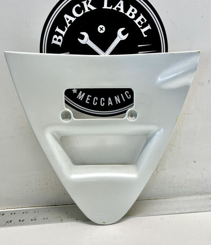 This Ducati 748 996 White 916 Fairing Oil Cooler Air Conveyor is a genuine OEM part made in Italy. It is a lower fairing made of ABS material and needs paint. The fairing comes with one piece and is suitable for the front placement on the vehicle. The manufacturer part number is 48410192A and it is compatible with Ducati bikes. The color is white and it is a painted finish. The item is ideal for motorcycle enthusiasts looking for a replacement part.