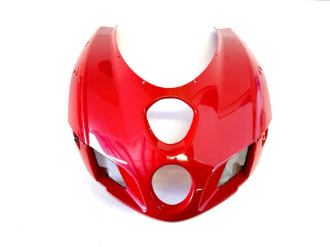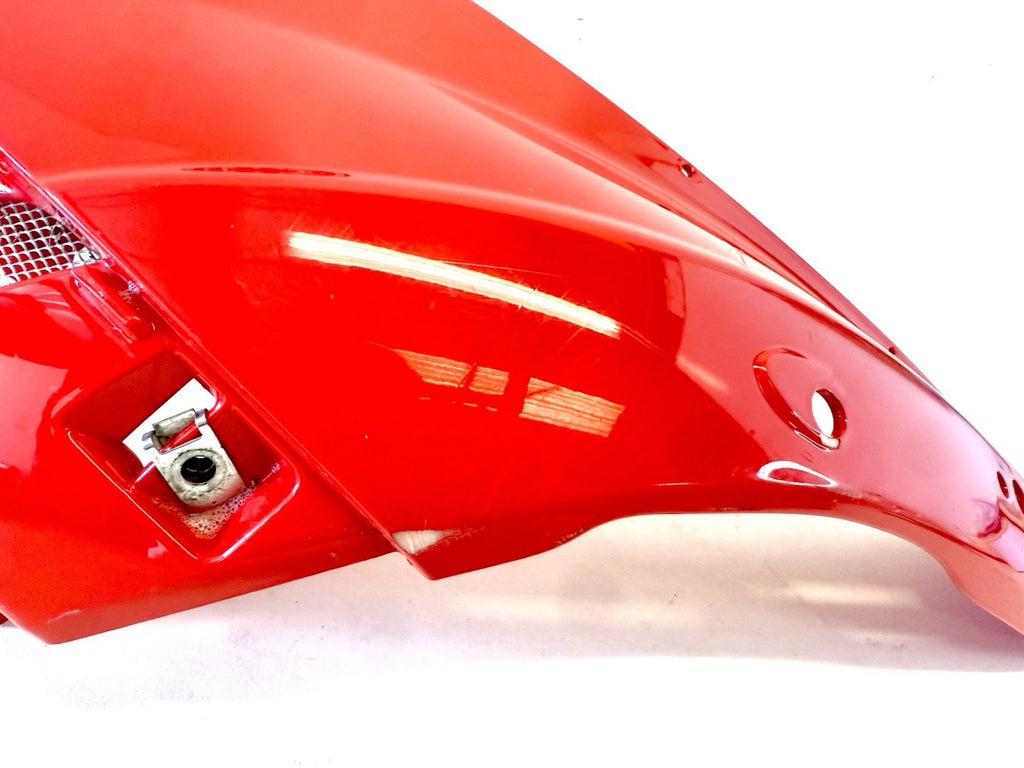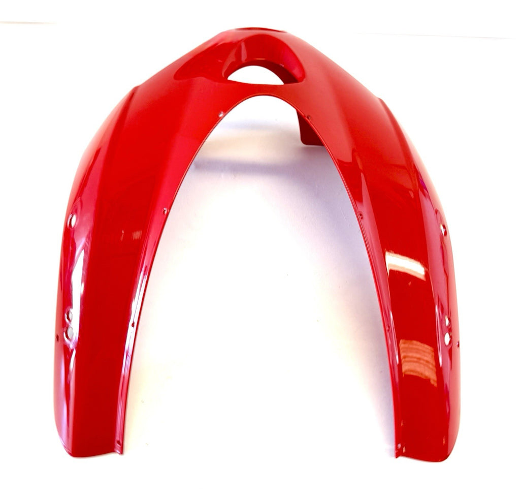 The product is a genuine front headlight fairing for Ducati 06-Up 749 999 motorcycles made in Italy. The fairing needs paint and comes in a red color. It is made of ABS material and includes one piece. The manufacturer part number is 48110251CA, and it is designed to be placed on the upper front part of the vehicle. This high-quality fairing is a perfect choice for customizing and restoring your Ducati motorcycle to its original condition. Defects are clearly marked in pics