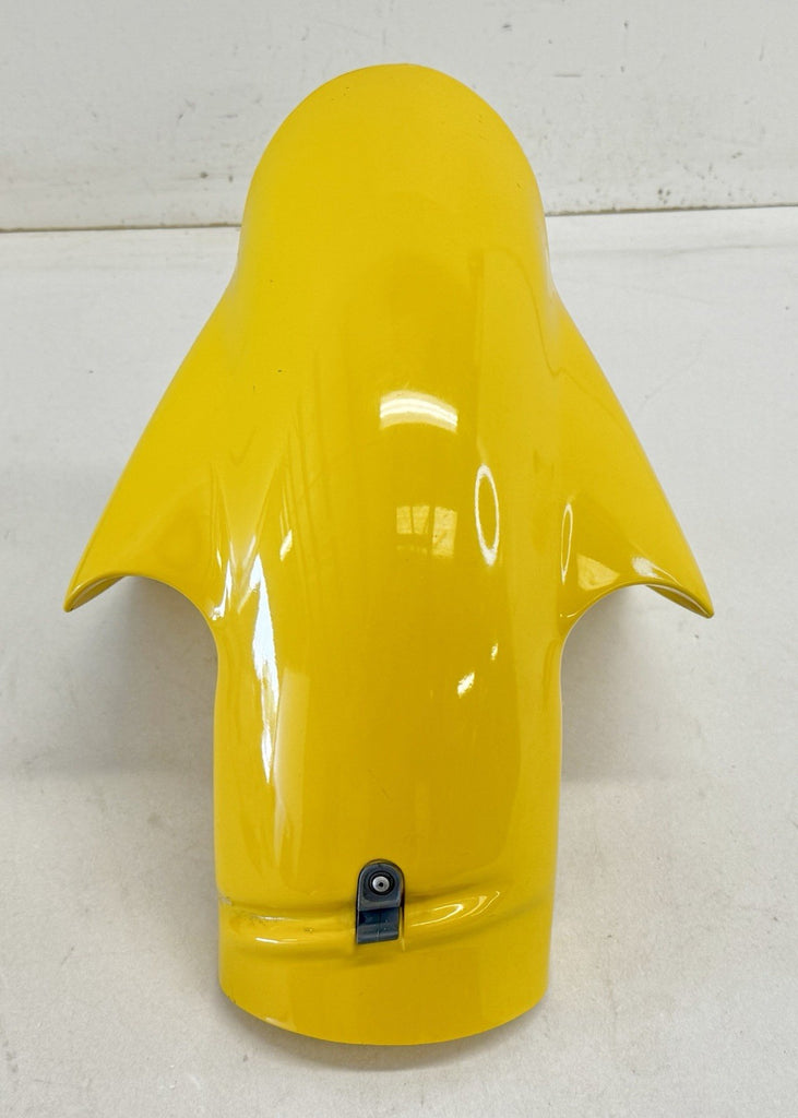 The Genuine Ducati 56410181A Front Fender Mudguard in Yellow is a high-quality motorcycle part made in Italy. This painted ABS fender is designed specifically for street motorcycles such as the Ducati 748, 998, 996, and 916. With its front placement on the vehicle, this fender only includes one piece, providing a perfect fit and genuine Ducati quality for motorcycle enthusiasts looking to replace or upgrade their bike's appearance.