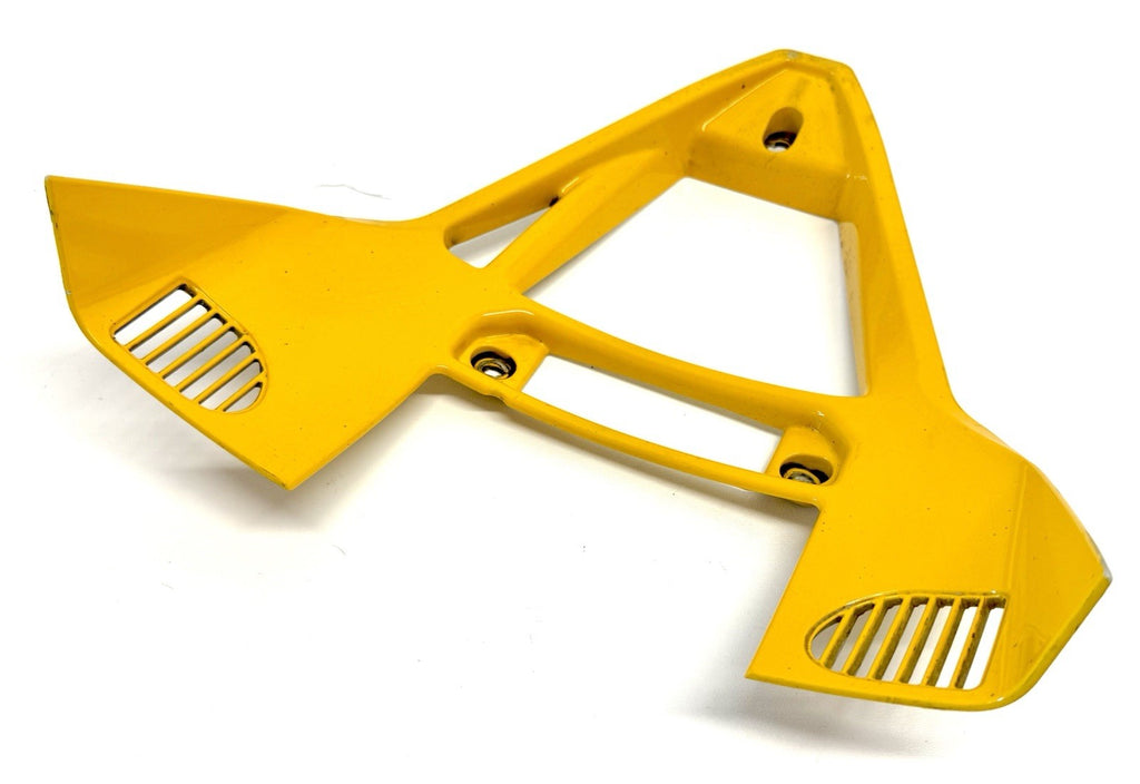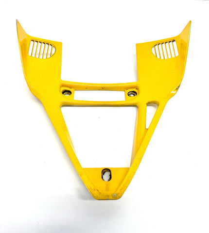 The Genuine Ducati 749-999 Yellow Oil Cooler Air Conveyor Fairing is a high-quality motorcycle part manufactured in Italy. Made from durable ABS material, this painted yellow fairing features the OEM part number 48430441A and is designed specifically for the front placement on the vehicle. Although it may have minor paint chips and scratches, this authentic Ducati fairing is a reliable and stylish addition to your motorcycle, ensuring both functionality and aesthetics.