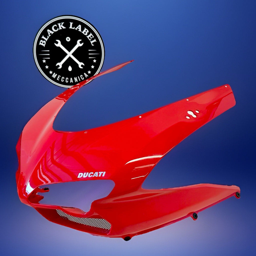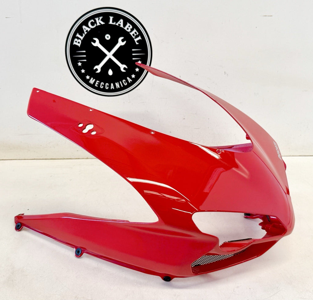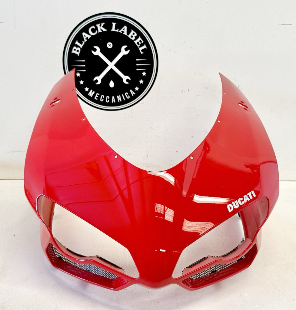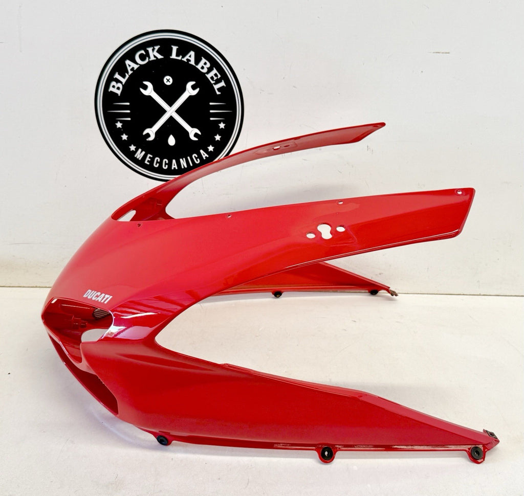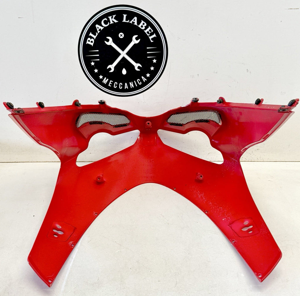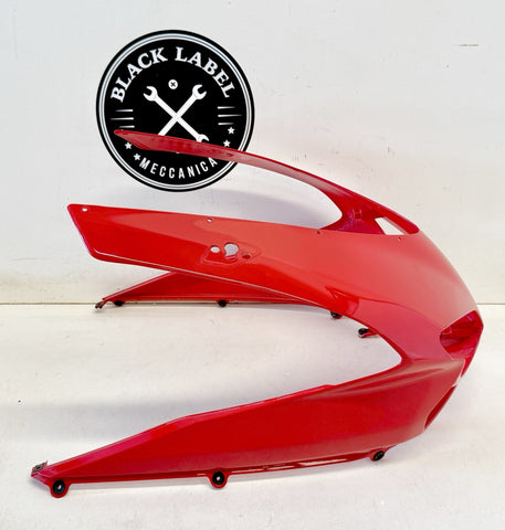 The Genuine Ducati 848-1098-1198 S R EVO SP Headlight Fairing in Red is a high-quality motorcycle accessory designed for Ducati models. Made of durable plastic in Italy, this fairing is a single piece with the OE/OEM part number 48130402A. It is specifically designed for the front placement on the vehicle, providing a sleek and stylish look while offering protection to the motorcycle. Perfect for Ducati enthusiasts looking to customize their bike with genuine Ducati parts.