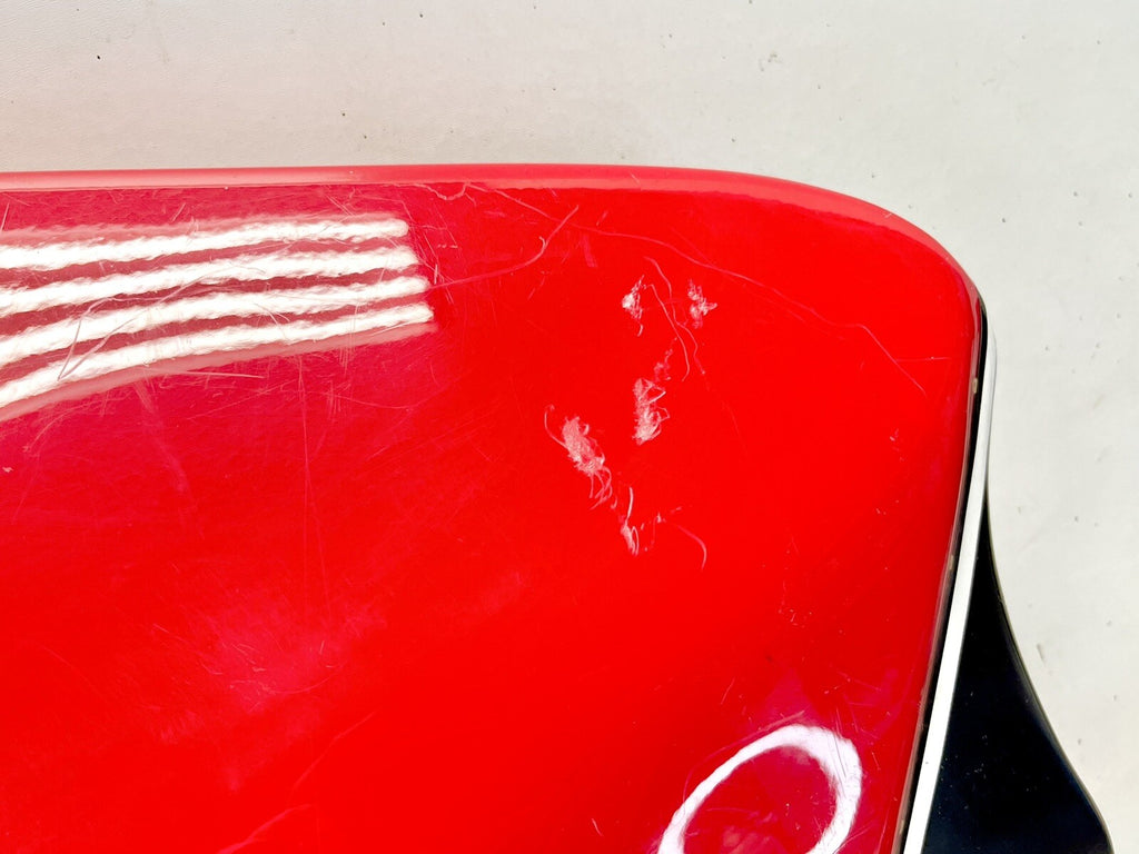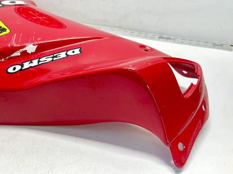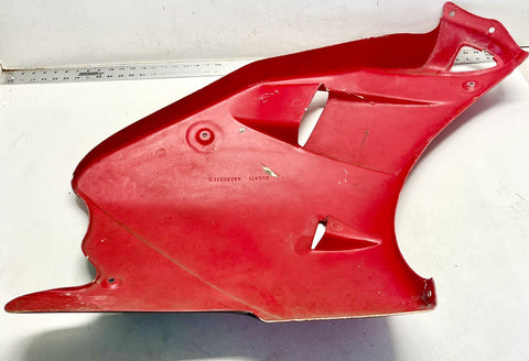This OEM left mid upper side fairing cowl is designed for a Ducati 851 motorcycle . It is made from durable ABS plastic materials in a striking red color, manufactured in Italy. The part number for this fairing is 48030011D, which corresponds to the original equipment manufacturer (OEM) specifications.