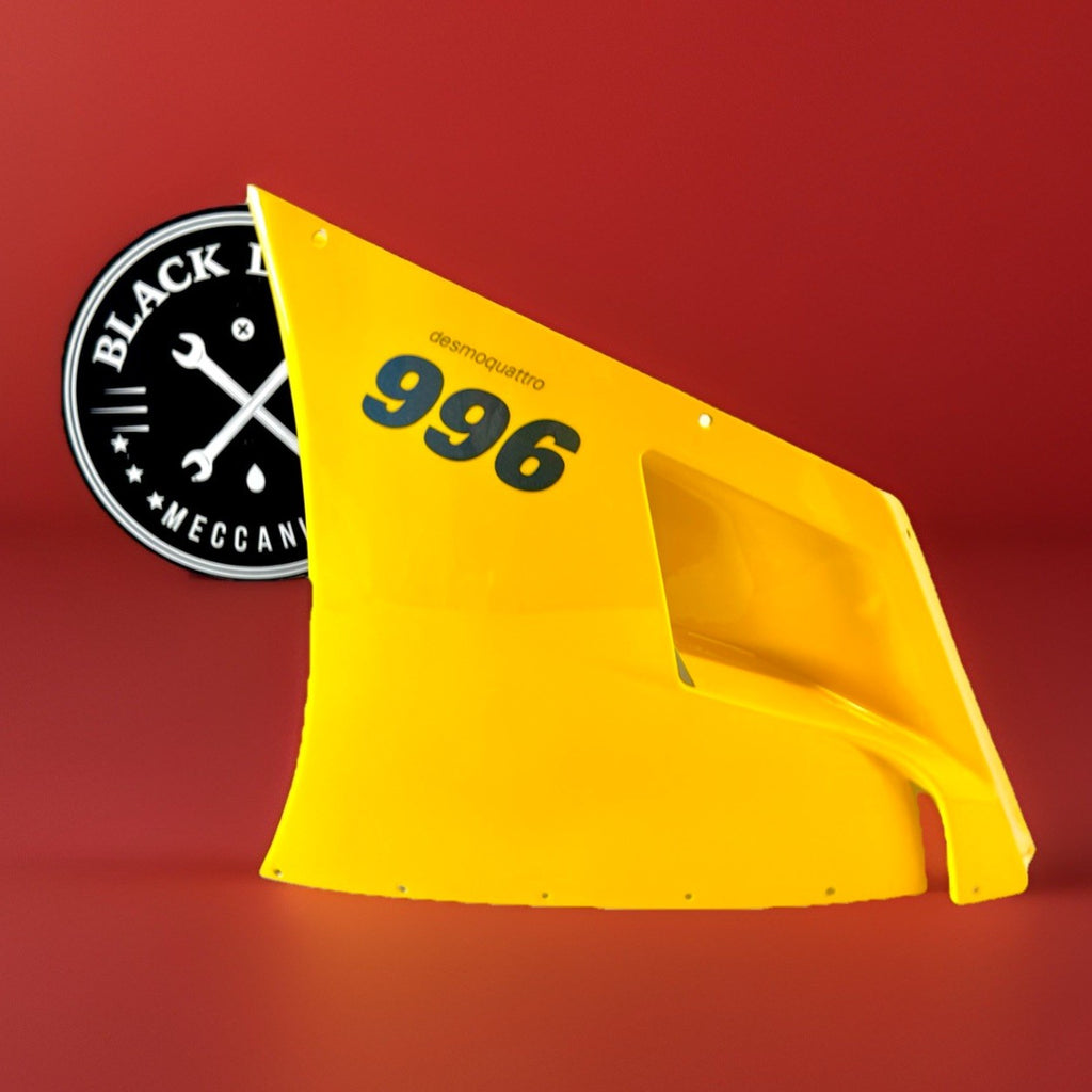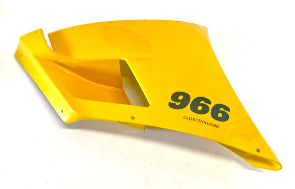 This genuine OEM Ducati side fairing is a perfect fit for your motorcycle. It is designed with high-quality ABS plastic material and painted with excellent attention to detail. The yellow color adds a touch of style to your bike. The fairing is pre-drilled and can be easily mounted on the right side of the vehicle. It is a non-domestic product and comes with a manufacturer part number of 48010401A. This side fairing is a great addition to your motorcycle and will enhance its overall look.