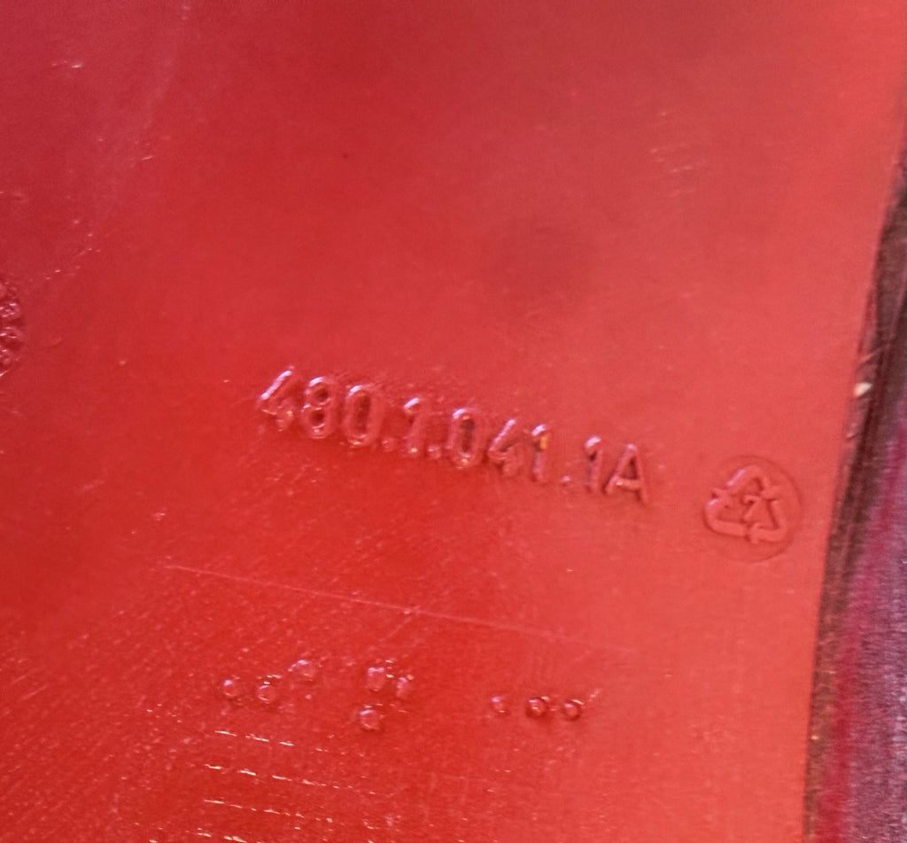 This is a rare and genuine Ducati 748 916 996 right hand lower fairing, part number 48010411A. The fairing comes in a red color made of ABS material. It is manufactured in Italy by Ducati. Perfect for those looking to replace or upgrade their motorcycle's lower fairing, this high-quality OEM part will fit and function just like the original.