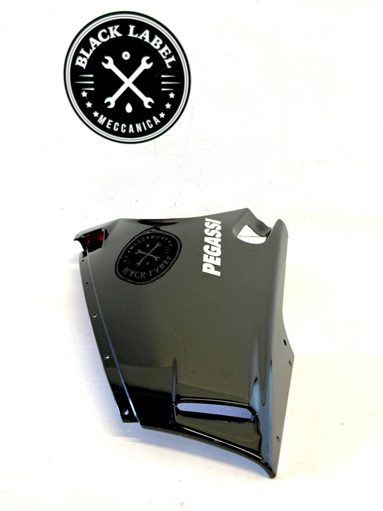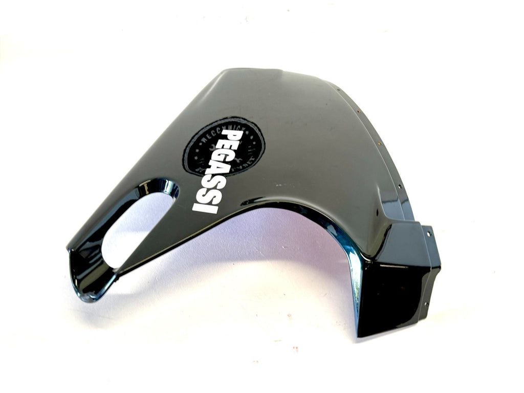 The product is a genuine Ducati lower left fairing in a dark green shade, designed for models such as the 748, 916, and 996. Made of ABS material in Italy, this fairing comes as a single piece with the OE/OEM part number 48010421A. The placement on the vehicle is on the lower left side, catering to those looking for a high-quality and authentic Ducati replacement part.