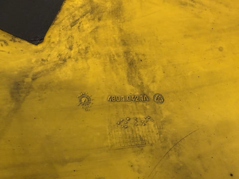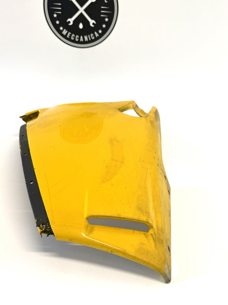 The Genuine Ducati Lower Left Fairing in yellow is a high-quality, authentic part made by Ducati in Italy. This ABS fairing, with the OE/OEM part number 48010421A, is designed specifically for the 748, 916, and 996 models. Although it needs repair, this fairing is a genuine replacement part that would be a perfect fit for any Ducati enthusiast looking to restore or upgrade their motorcycle. The bright yellow color adds a pop of color to the bike, and the Italian craftsmanship ensures durability and quality.