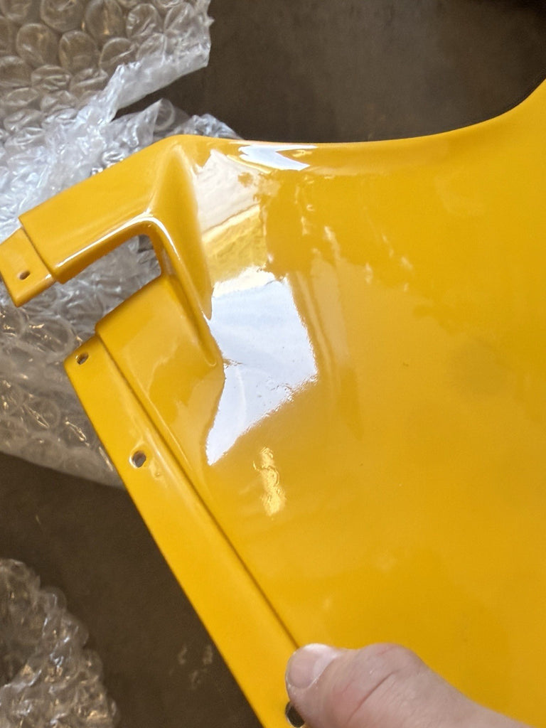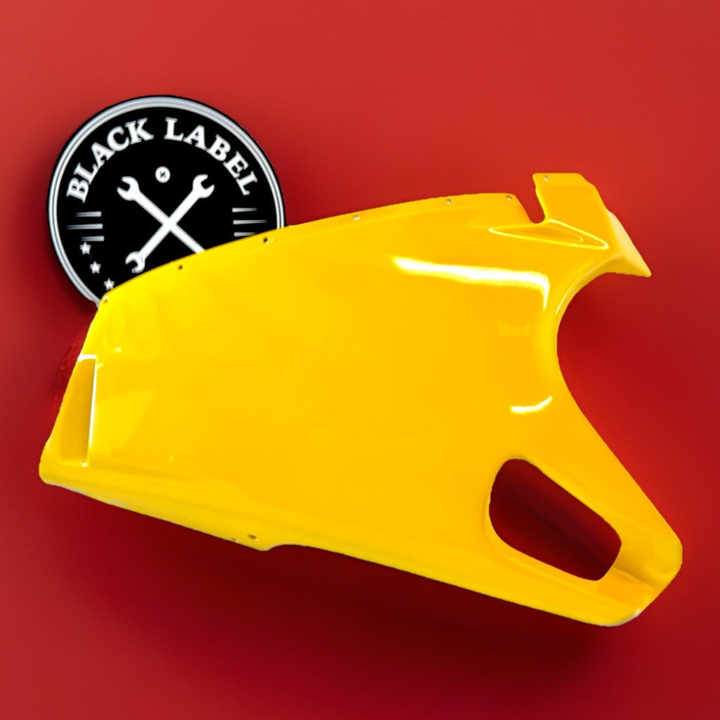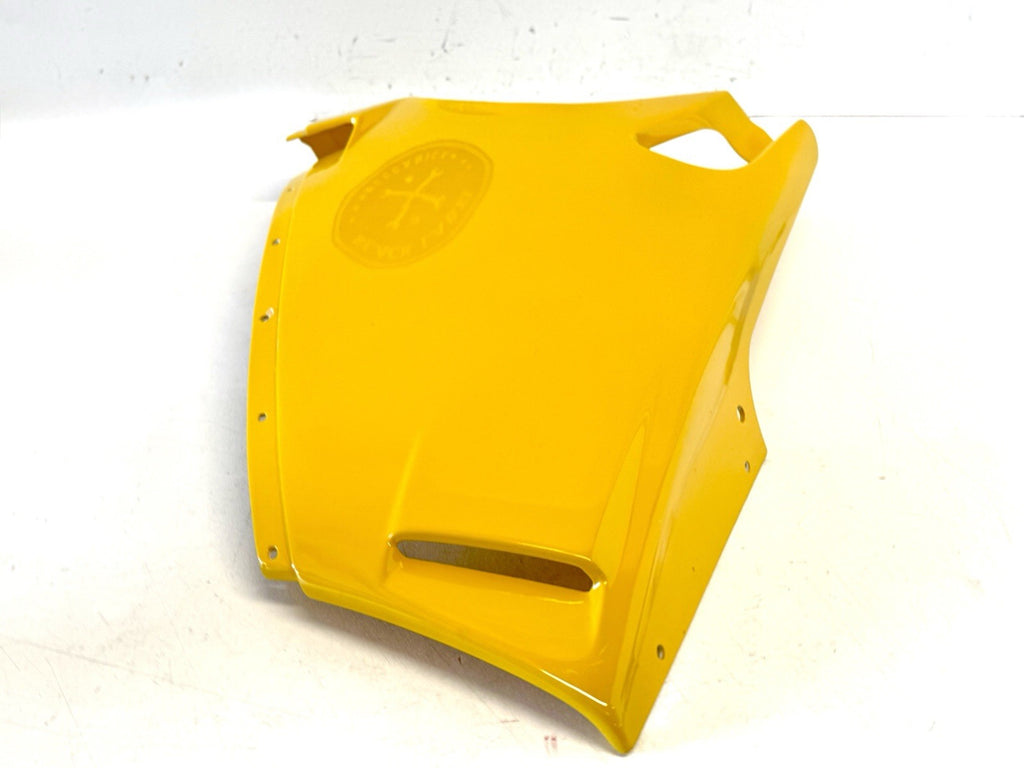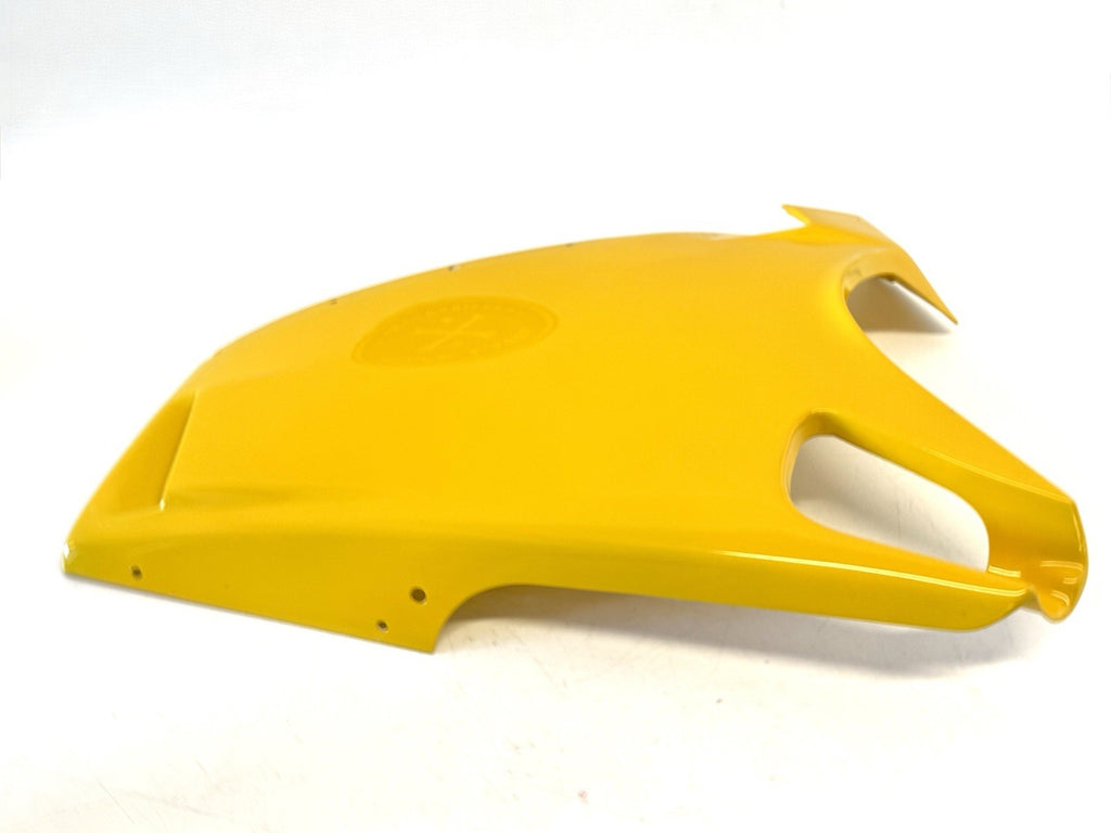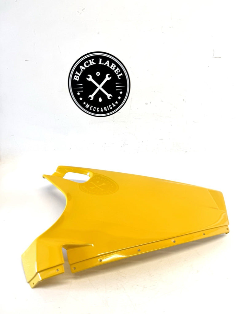 This product is a genuine Ducati lower left fairing in yellow color, designed for models such as 748, 916, and 996. Made of ABS material, this fairing is an original equipment manufacturer part with the number 48010421A. It is manufactured in Italy and is a single piece, specifically designed for the lower left side of the motorcycle. Despite having scratches, this authentic Ducati fairing is a high-quality and durable component to enhance the look and protection of your motorcycle.