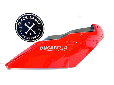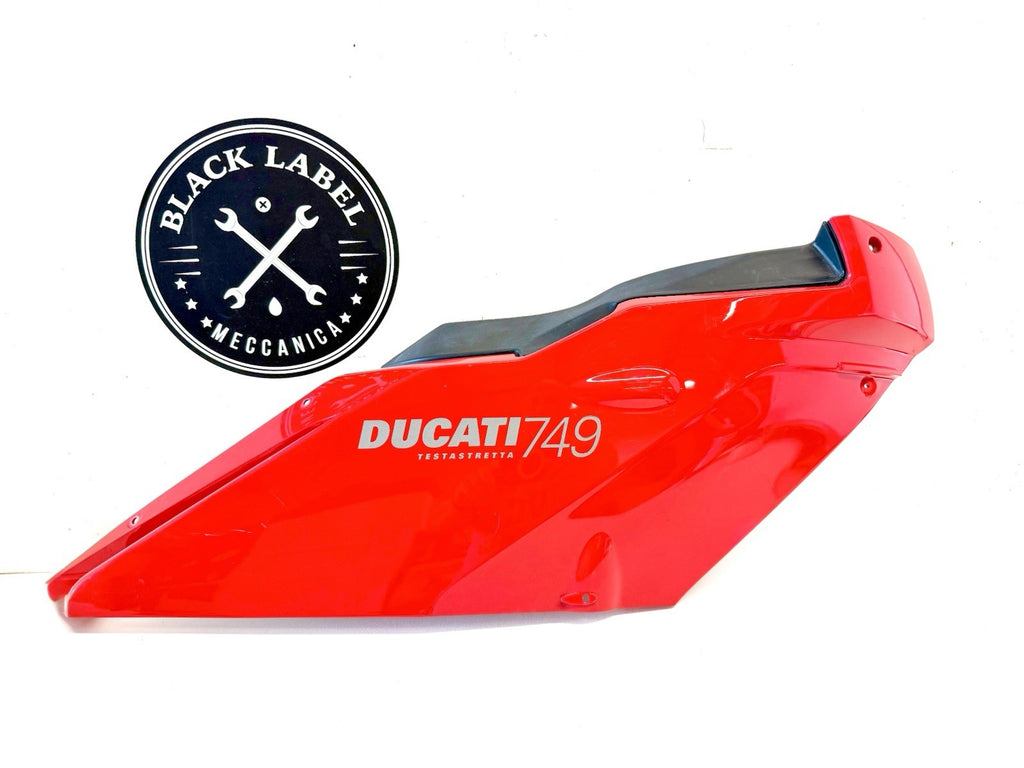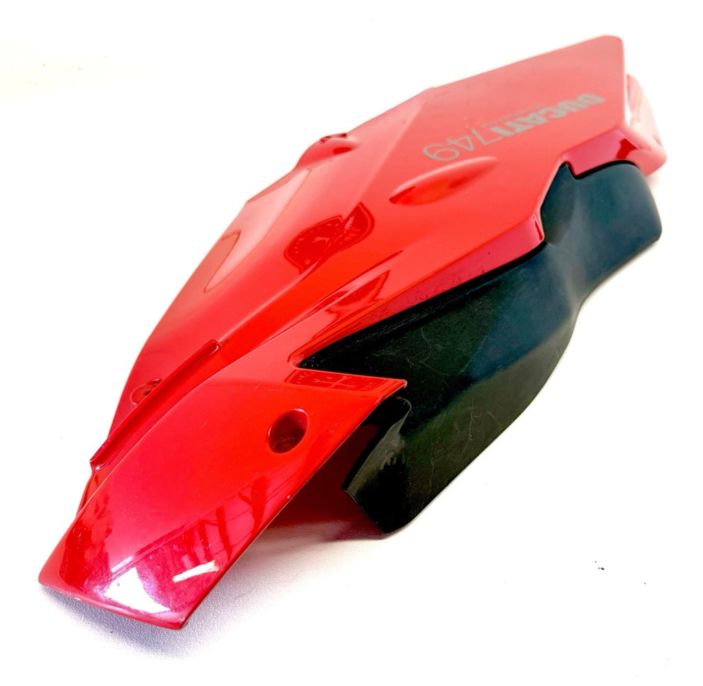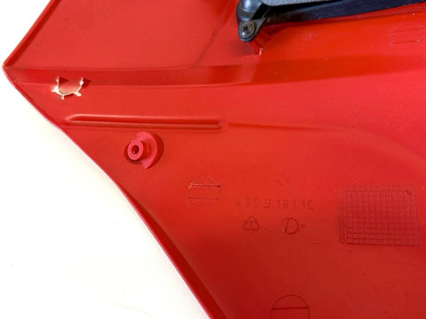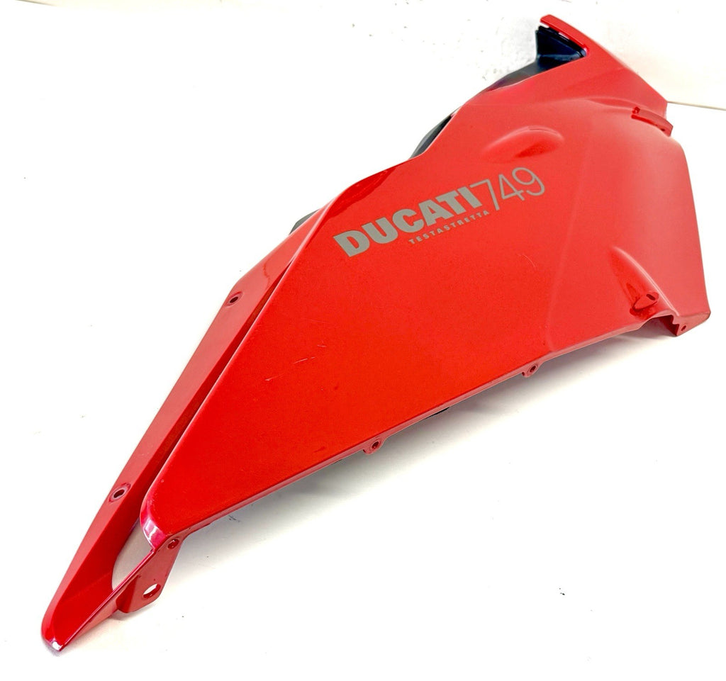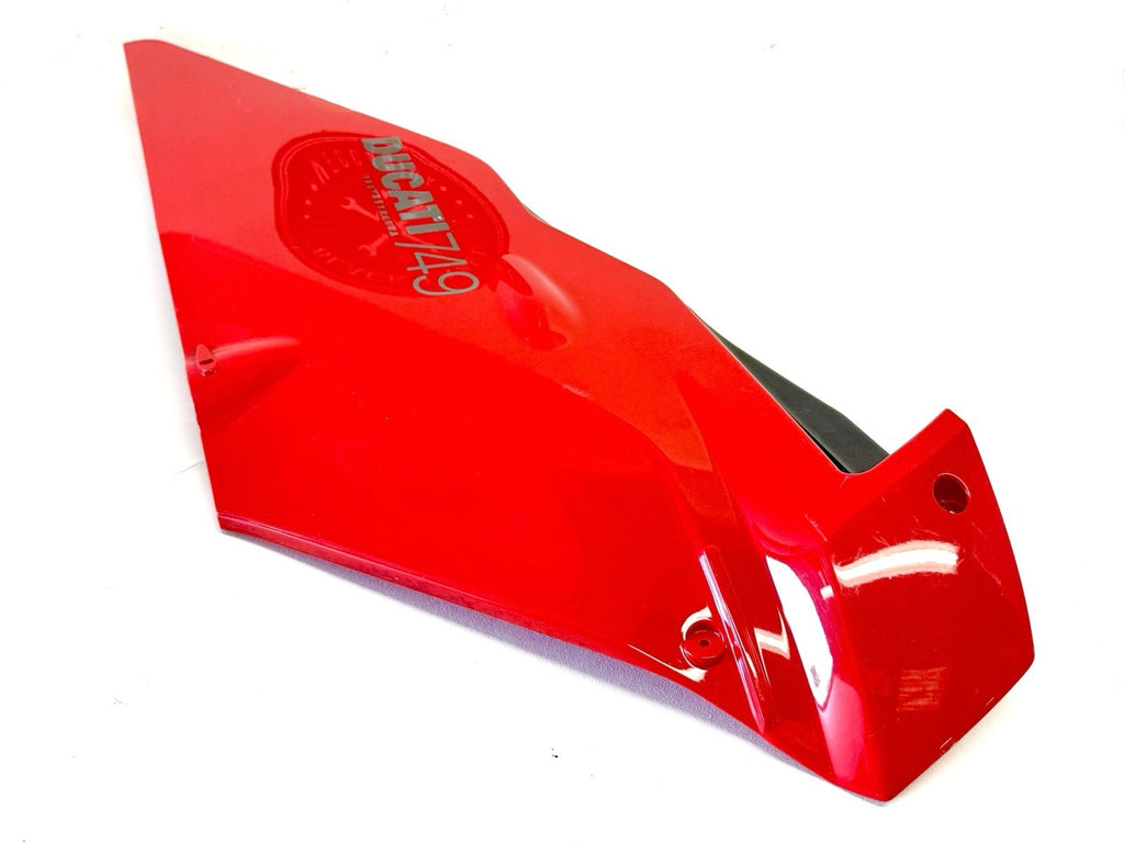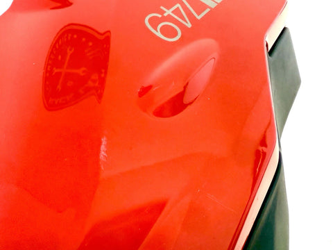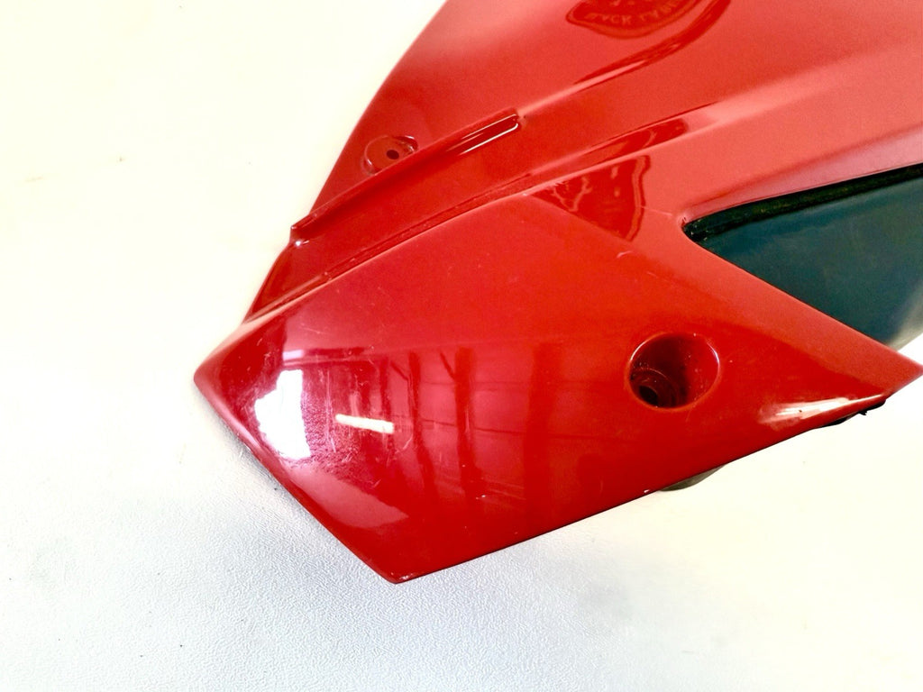 The Genuine Ducati Superbike 749 Standard Upper Half Fairing Right Red 48031811C is a high-quality motorcycle part manufactured by Ducati in Italy. This ABS material fairing is designed for the right side of the vehicle and comes in a striking red color. It is a single-piece upper mid fairing that is essential for maintaining the structural integrity and aesthetic appeal of the Ducati Superbike 749. Perfect for motorcycle enthusiasts looking to replace or upgrade their fairing, this genuine Ducati part is a reliable and stylish choice. Has minor scratches shown in pics