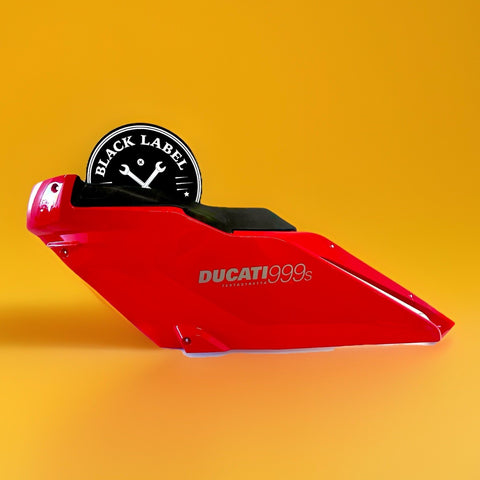 The Genuine Ducati Superbike 999s Standard Upper Half Fairing Left in Red is a high-quality, ABS material fairing designed for Ducati motorcycles. Made in Italy, this single piece Upper Mid Fairing is a perfect fit for those looking to customize their bike with genuine Ducati parts. The red color adds a sleek and sporty touch to the vehicle's overall appearance, while the left placement on the vehicle ensures a proper fit for optimal performance and aesthetics. Perfect for motorcycle enthusiasts looking to enhance their Ducati Superbike 999 with genuine parts from the manufacturer.