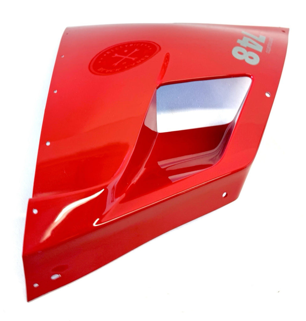 The Genuine OEM Ducati 996 748 916 Red Mid Fairing Cowling Left is a high-quality, authentic part made from ABS plastic in Italy. This painted red side fairing is designed for the Ducati brand, specifically for the left side of the vehicle. With pre-drilled mounting holes, this one-piece fairing is a perfect replacement part for your motorcycle, adding a touch of style and authenticity to your ride.