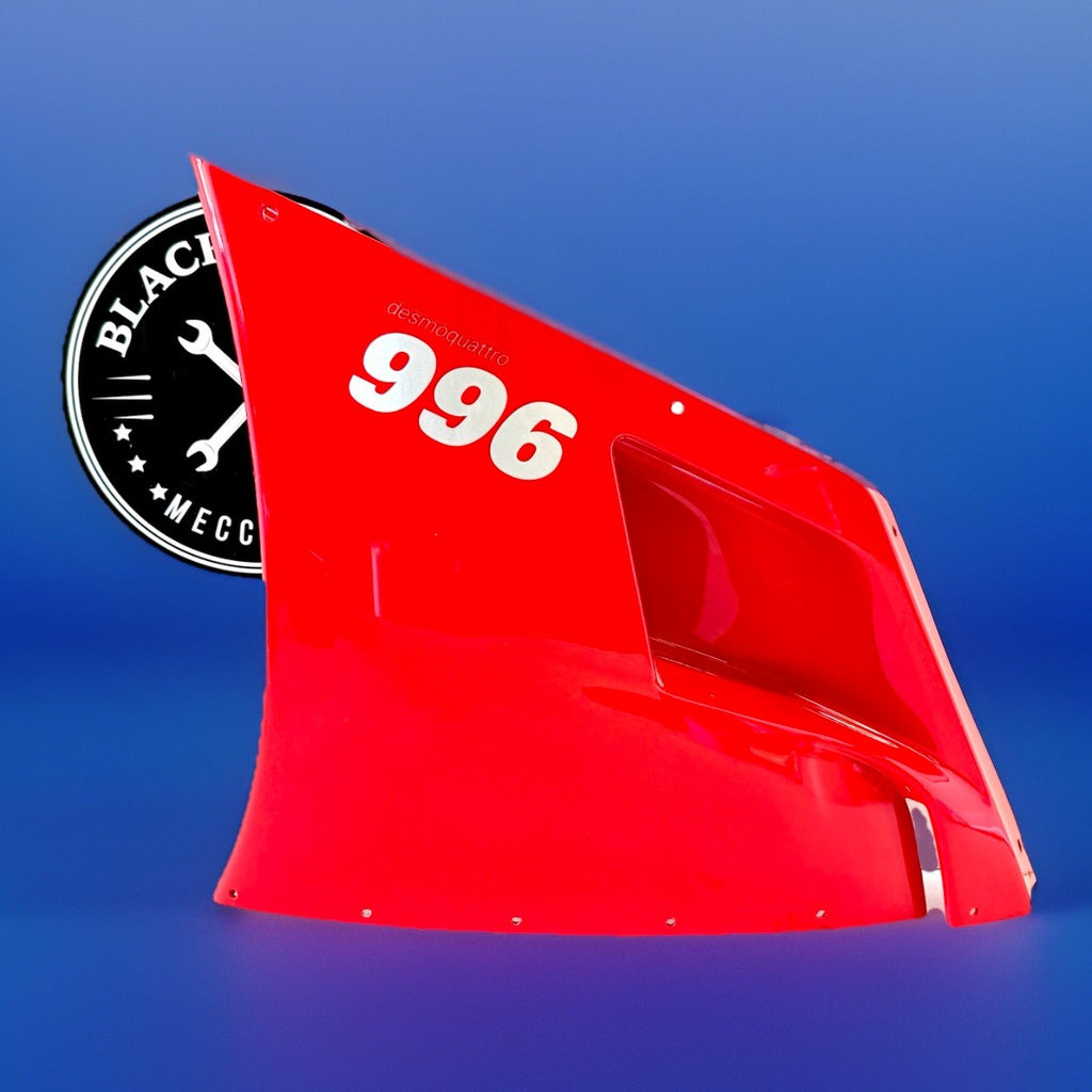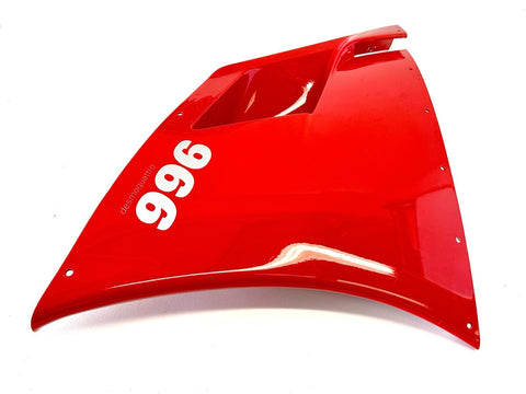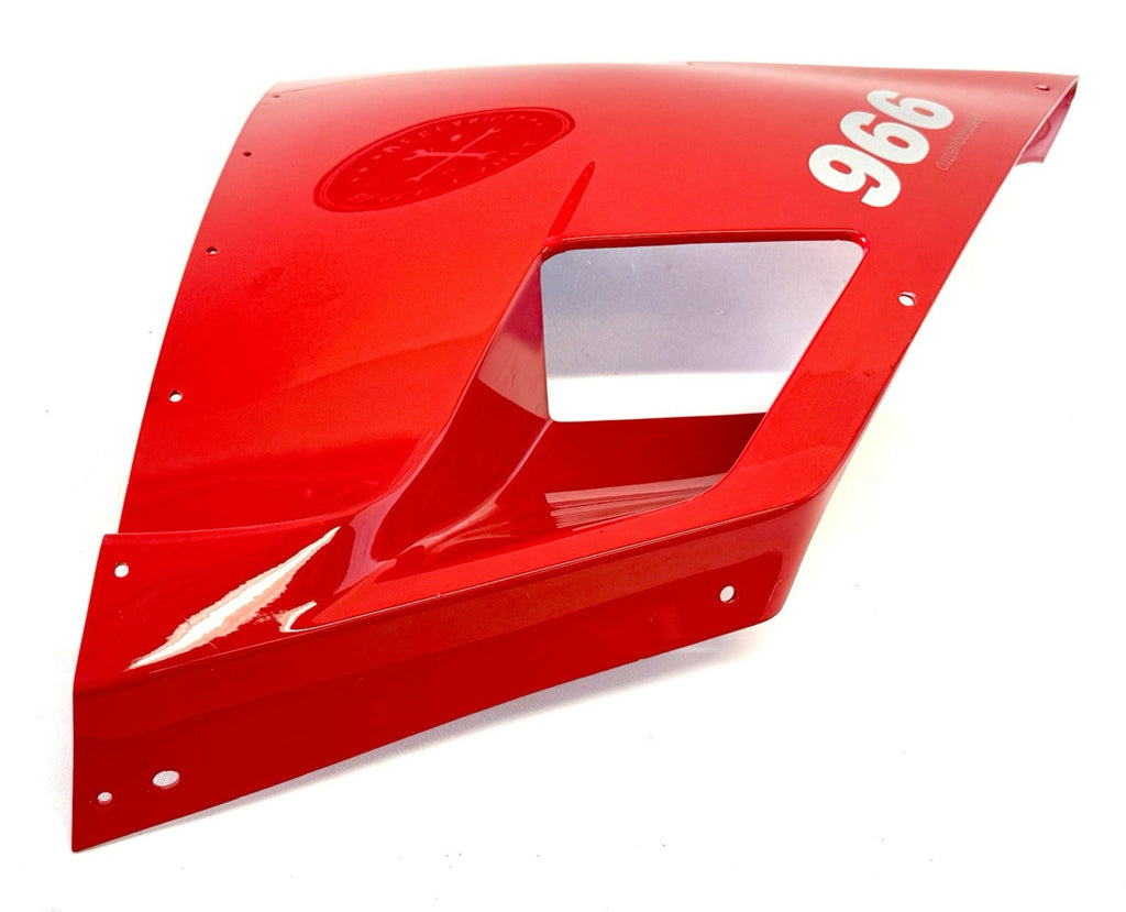 This genuine OEM Ducati side fairing is a perfect fit for your motorcycle. It is designed with high-quality ABS plastic material and painted with excellent attention to detail. The red color adds a touch of style to your bike. The fairing is pre-drilled and can be easily mounted on the right side of the vehicle. It is a non-domestic product and comes with a manufacturer part number of 48010401A. This side fairing is a great addition to your motorcycle and will enhance its overall look.