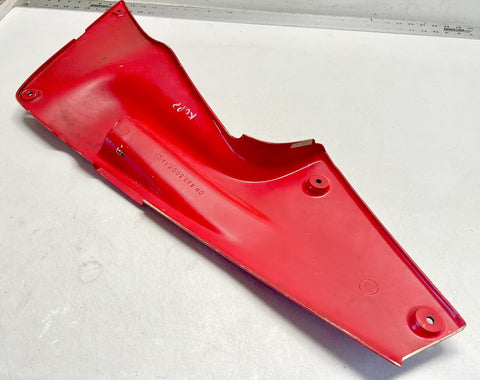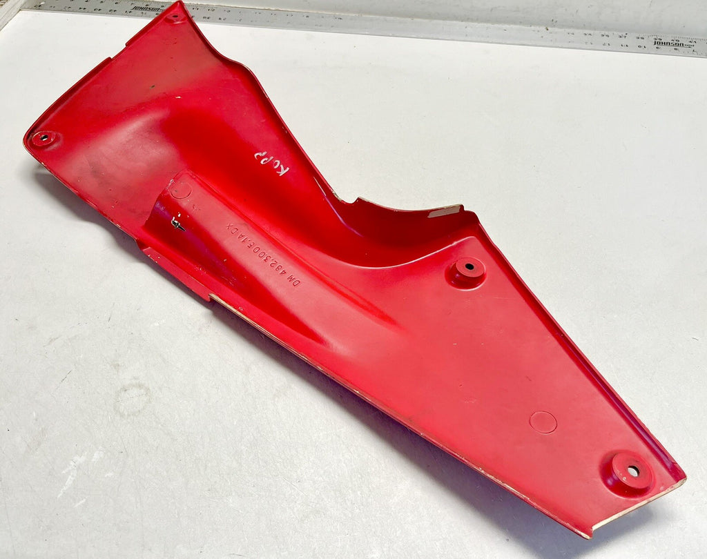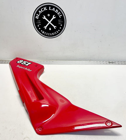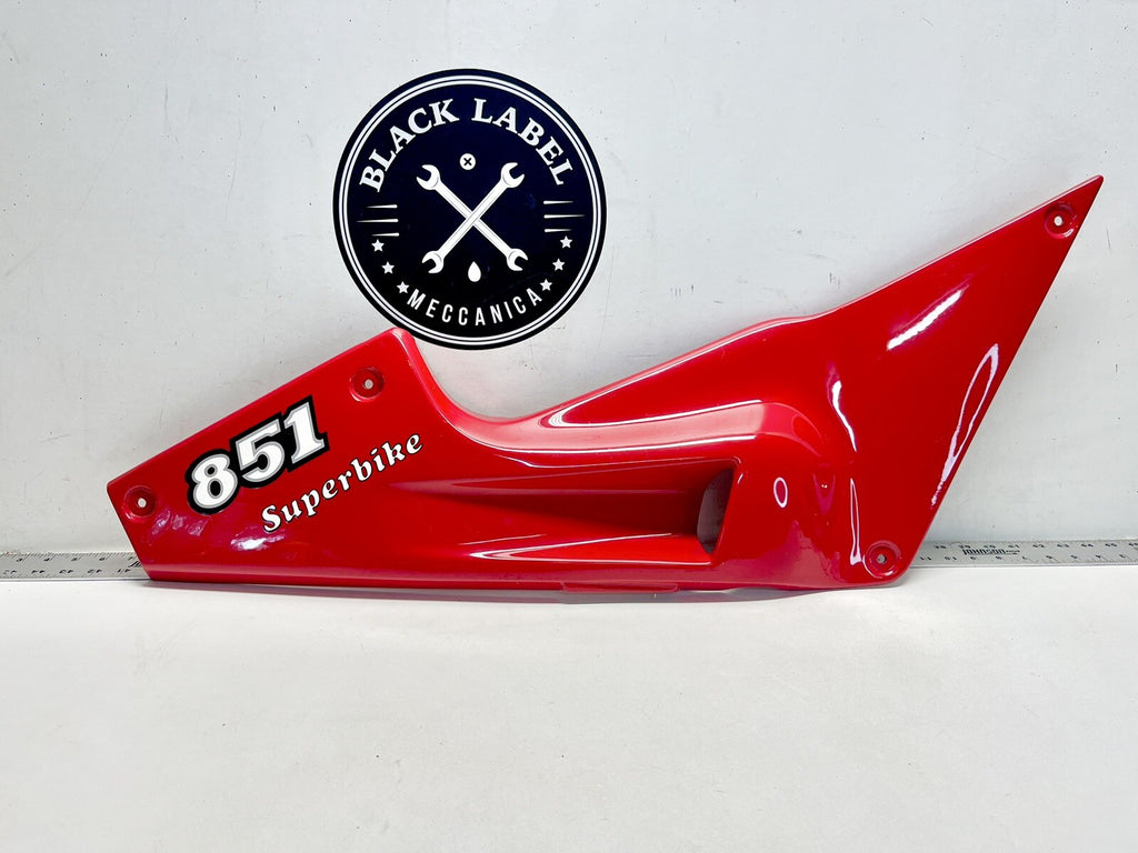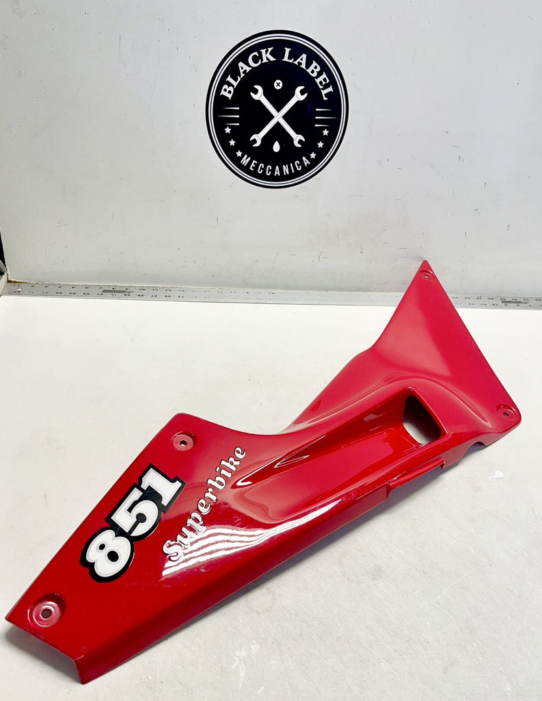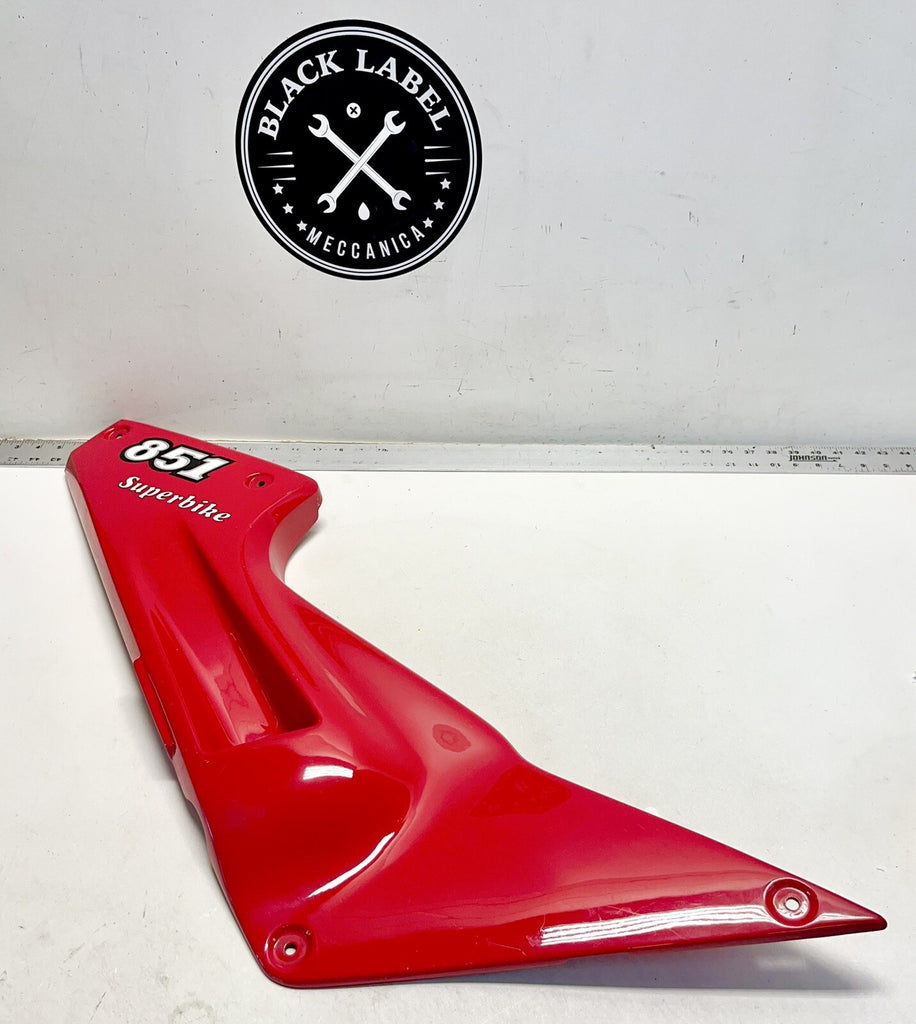 Enhance the look of your Ducati 851 Strada with this genuine used right side tail fairing cowl panel. Crafted in Italy from high-quality plastic material, this panel is compatible with Ducati motorcycles from 1989 to 1991. The vibrant red color adds a touch of style to your bike, making it stand out on the road.