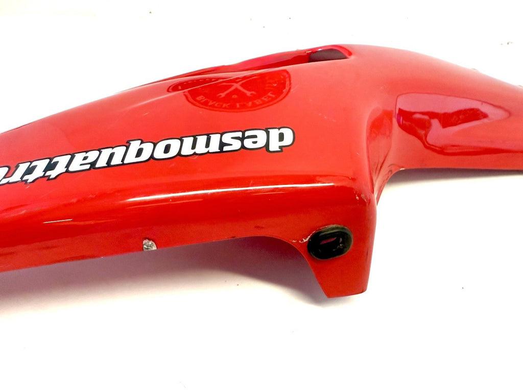 Enhance the look of your Ducati 888 Strada with this genuine used left side tail fairing cowl panel. Crafted in Italy from high-quality plastic material, this panel is compatible with Ducati motorcycles from 93-94. The vibrant red color adds a touch of style to your bike, making it stand out on the road.