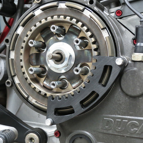 KBIKE dry clutch basket holder Tool made of Delrin. Fits all dry clutch Ducati models. Does not come with hardware. Uses oem clutch cover bolts to secure tool onto clutch case cover.