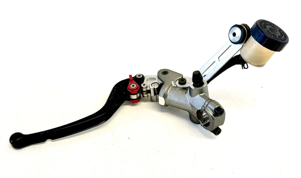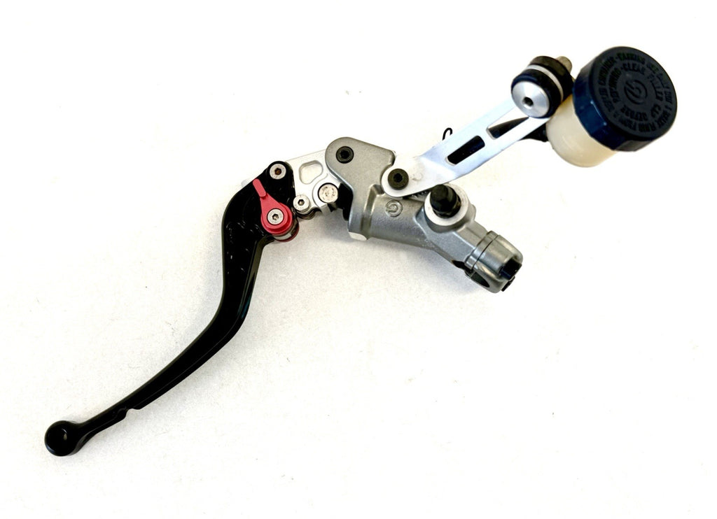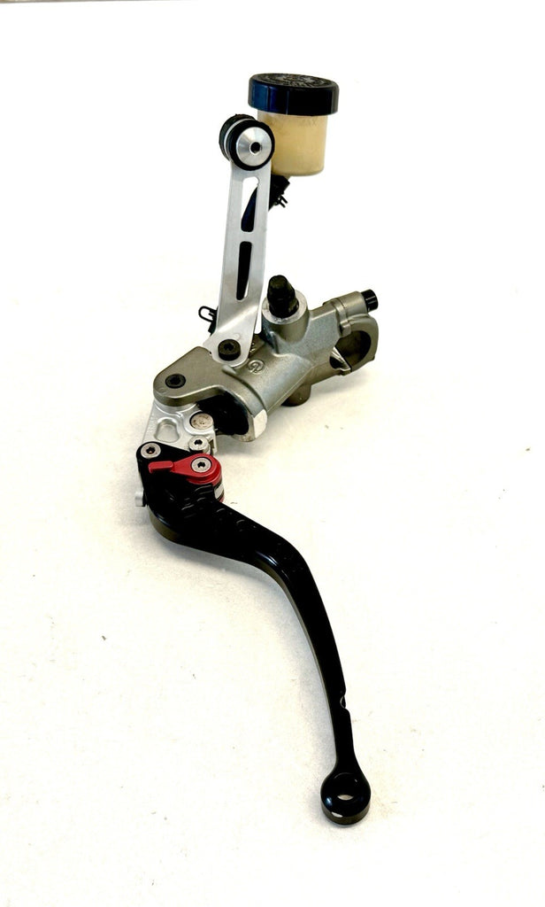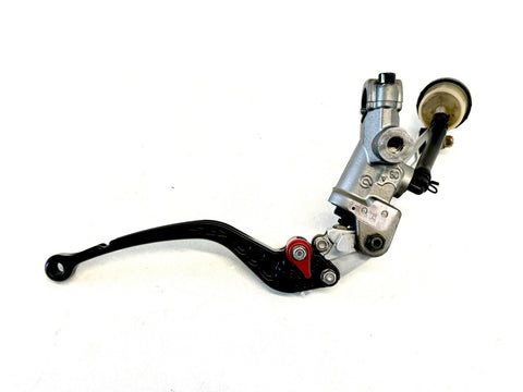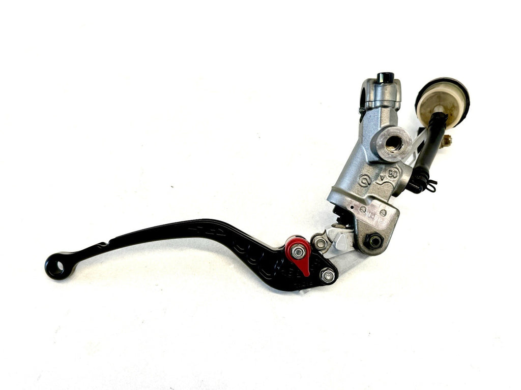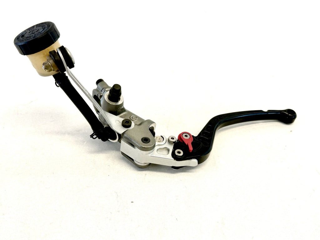 The Genuine Ducati 1098 1198 848 Clutch Master Cylinder Assembly CRG Lever 63040554A is a high-quality motorcycle part made in Italy. This assembly includes a clutch master cylinder with the OE/OEM part number 63040554A, designed specifically for Ducati motorcycles. The product comes complete with the necessary components to ensure proper functionality, making it a reliable choice for motorcycle enthusiasts looking to replace or upgrade their clutch system.