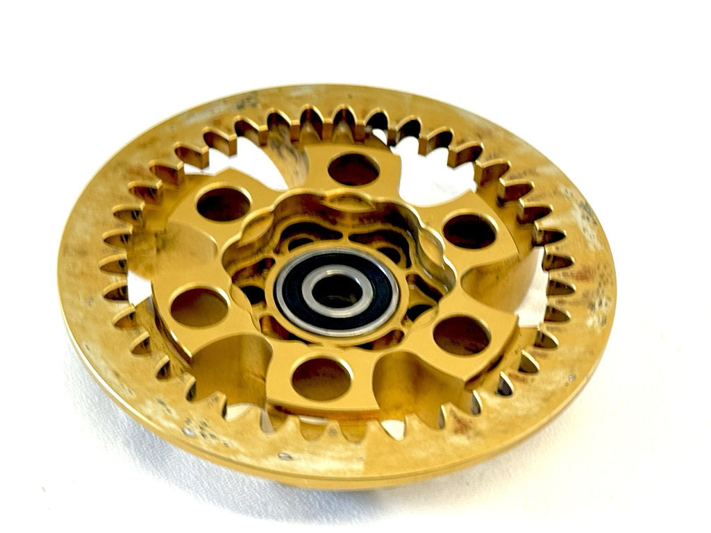 The Genuine Speedymoto Anodized Dry Clutch pressure plate is a high-quality, durable accessory designed to fit most Ducati models from 1991 to 2014. Made in the United States, this gold clutch pressure plate adds a sleek and stylish touch to your motorcycle while providing protection for the clutch mechanism. The Speedymoto brand ensures a reliable and trusted product that is sure to enhance the performance and aesthetics of your Ducati bike.