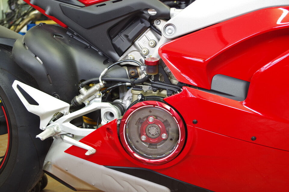 KBIKE Clutch cover for Ducati Panigale V4 V4S anodized and built in billet aluminum the transparent plate is specially treated to resist heat and pressure.