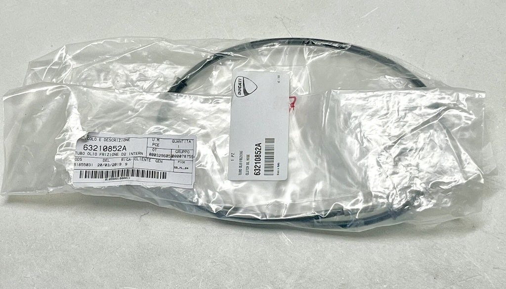 This is a genuine Ducati 19-20 Panigale V4 Clutch Master Control Line Hose, made in Italy. The part number for this item is 63210852A and it comes with a Clutch Line. This product is perfect for those who are looking to replace their old or damaged Clutch Line, and it is a great fit for their motorcycle. The brand of the item is Ducati, which ensures that it is a high-quality product that will last for a long time. Additionally, it is compatible with OE/OEM Part Number 63210852A and Manufacturer Part Number 63210852A.