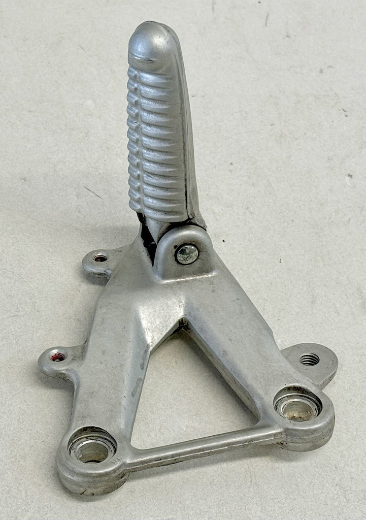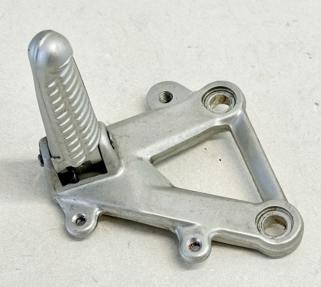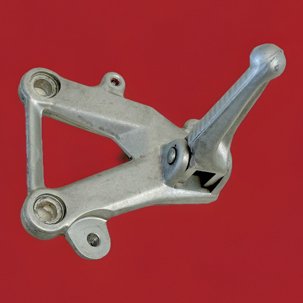 The Ducati 848 1098 1198 Rear set Front Left Shifter Footrest Footpeg Peg Bracket is a high-quality aluminum footrest designed for street motorcycles. Made in Italy, this silver footpeg is a bolt-on piece that is easy to install on the left side of the vehicle. It is a genuine Ducati part, ensuring both durability and compatibility with the specified Ducati models. This footrest not only provides a sturdy and reliable option for controlling the bike but also adds a sleek and stylish look to the motorcycle's design.