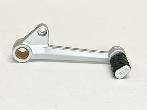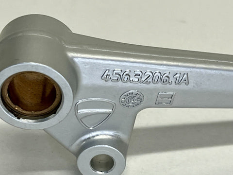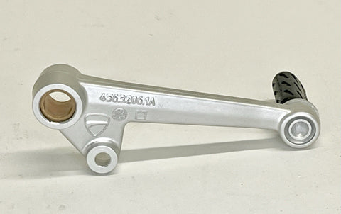 The Genuine OEM Ducati Diavel Gearbox Shifter Gear Selector Lever Pedal 45622061DA is a high-quality aluminum pedal designed for easy installation on the left side of the vehicle. This silver anodized pedal is a genuine OEM part manufactured in Italy by Ducati. With a sleek design and precise engineering, this shifter pedal is a perfect fit for motorcyclists looking to enhance their riding experience with a genuine Ducati part.