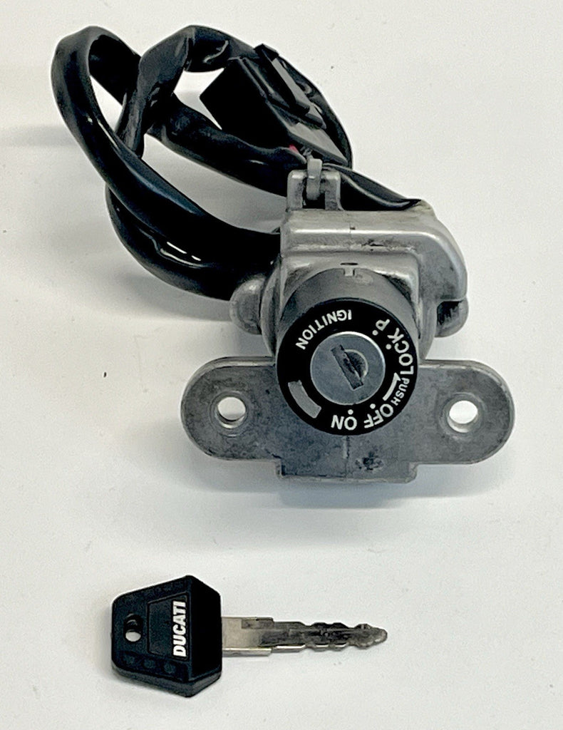 This Genuine Ducati 748-916-996-998 Used Superbike Ignition Switch with Key is a high-quality, durable component designed for Ducati motorcycles. Made in Italy, this ignition key switch is a perfect replacement part for your bike, ensuring secure and reliable ignition functionality. The switch can be easily installed on the top triple clamp of your vehicle, providing a seamless and authentic fit for your Ducati motorcycle. With this genuine Ducati product, you can trust that your bike will continue to perform at its best.