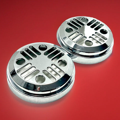 Enhance the look of your Ducati Sportclassic Paul Smart GT1000 with this pair of genuine OEM chrome horn covers. Made in Italy, these horn covers are designed to fit perfectly and provide a sleek finish to your bike's horn system. The easy installation feature ensures that you can quickly and effortlessly replace your old horn covers with these.