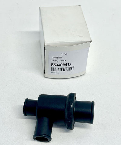 The product is a Genuine OEM Ducati thermo switch thermostat designed for models such as the 848, 1098, 1198 S4RS, and Diavel. Made in Italy by Ducati, the thermostat has the OE/OEM part number 55340041A and is a reliable replacement for maintaining optimal engine temperature control. Ideal for motorcycle enthusiasts who value quality and authenticity in their bike parts, this Ducati thermostat ensures precise performance and durability.