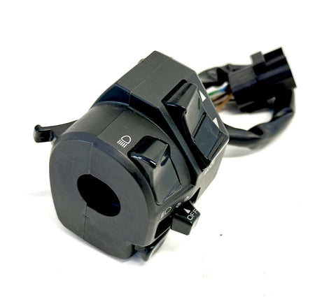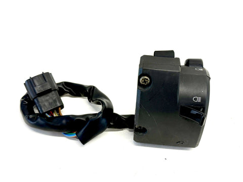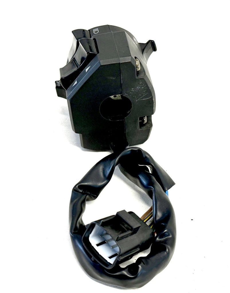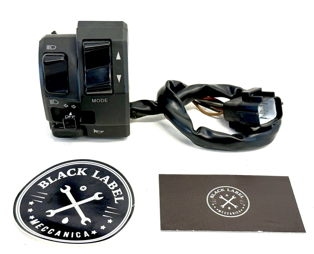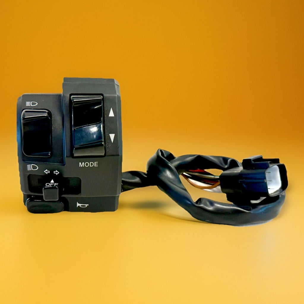 The product is a left-hand control switch for Ducati 1098, 848, and 1198 models, specifically designed for horn switch use. It features mini-blade terminals and a direct fit installation. This turn signal switch and high beam switch is manufactured in Italy, ensuring quality and compatibility with the Ducati bikes. Ideal for easy installation, this switch is a reliable replacement for your motorcycle's electrical and ignition components.