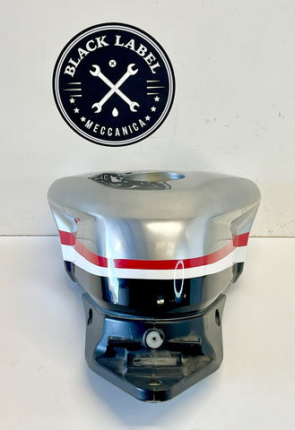 Enhance your Ducati's aesthetics with this genuine Ducati plastic fuel gas petrol tank, designed to fit seamlessly into the heart of your 848-1098-1198 lineup. Crafted with precision in Italy, its faux aluminum finish reflects a sleek, silver elegance, complementing your bike's sleek design and adding a touch of sophistication.