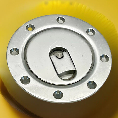 This is a genuine used fuel tank cap for Ducati F1 Paso 851 750 Sport street motorcycles. Made of high-grade aluminum with a polished silver finish, this cap is designed for easy installation with its screw-on attachment type. It also features ventilation and requires no drilling or modifications for installation. This does have a few minor scratches
