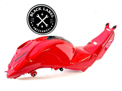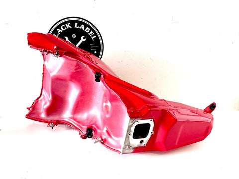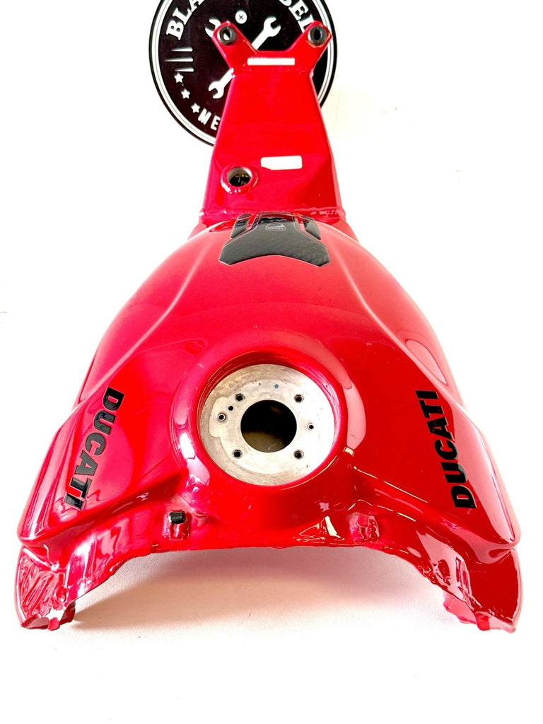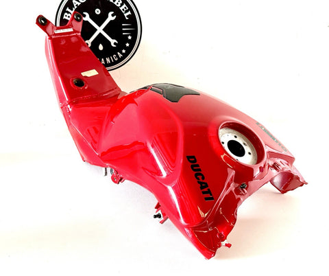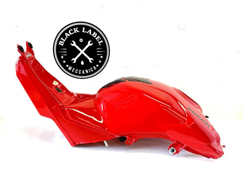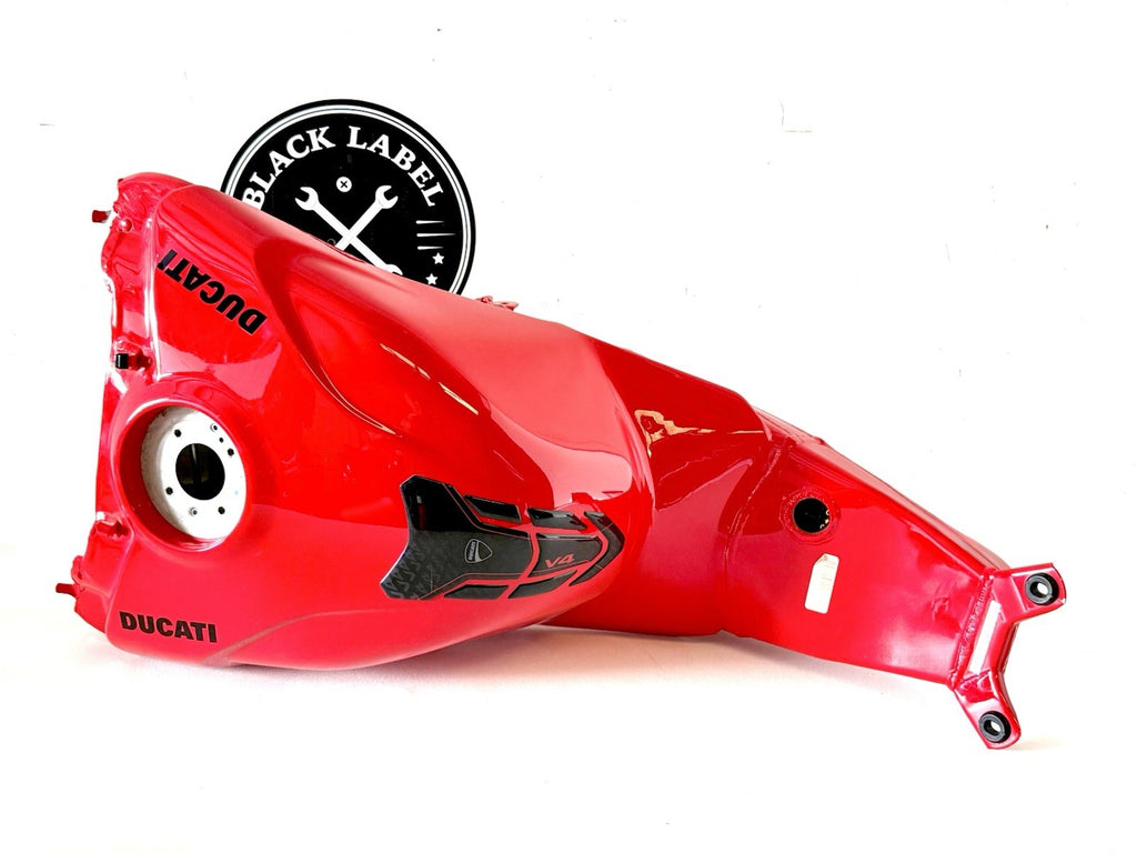 The product is a genuine used Ducati Panigale 2023 V4 V4S fuel gas petrol tank in red color, manufactured in Italy. Made of aluminum and painted in red, this fuel tank is designed for front placement on the vehicle and is suitable for gasoline fuel type. The OE/OEM part number and manufacturer part number are both 58612621BA. It is a high-quality replacement part for Ducati motorcycles, providing durability and authenticity in terms of brand and manufacturing.