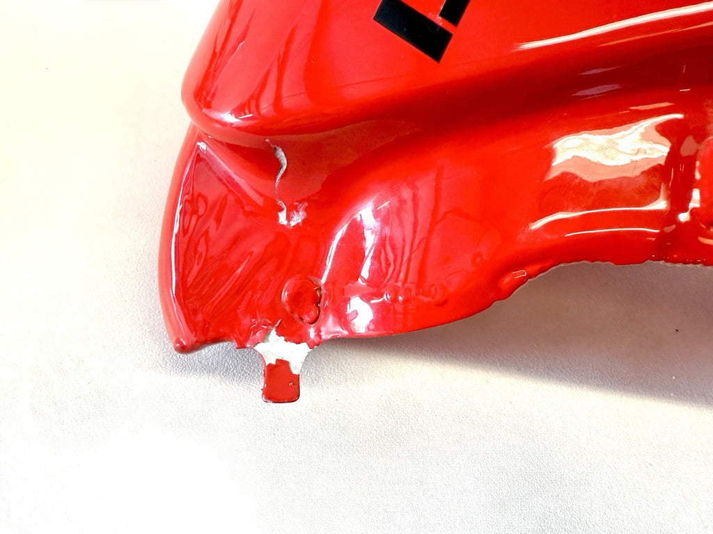 This tank has a paint chip. It is cover by the front tank fairing when installed . Shown in pics
