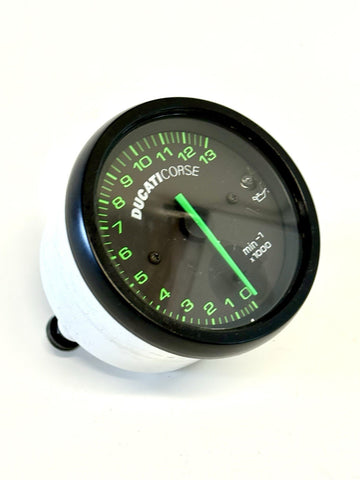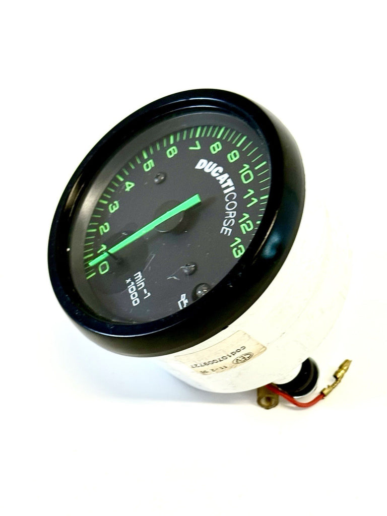 The Ducati Tachometer Tach Rev Counter Meter is a high-quality instrument cluster designed for racing-style motorcycles like the Ducati Corse 748, 916, and 996. This meter features an illuminated (backlit) display for easy reading during both day and night. With the OE/OEM Part Number 40240061B and Manufacturer Part Number 40240061B, this tachometer is a genuine Ducati product, ensuring a perfect fit and reliable performance for your motorcycle. Upgrade your bike's cockpit with this stylish and functional racing-inspired tachometer.
