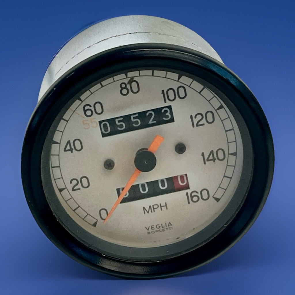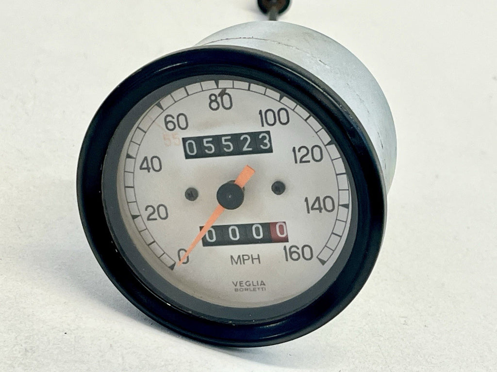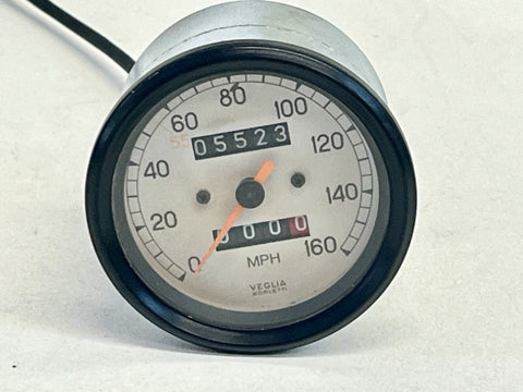 The product is a genuine OEM Veglia speedometer designed for Ducati motorcycles such as 851, 888, 900SS, and 750SS from 1991 to 1998. This speedometer gauge features a fluorescent orange needle color and is illuminated for easy reading at night. With a vintage part designation, this speedometer is a rare find for those looking to replace or upgrade their motorcycle's instrument panel. The manufacturer part number is 201502309, ensuring compatibility and authenticity.