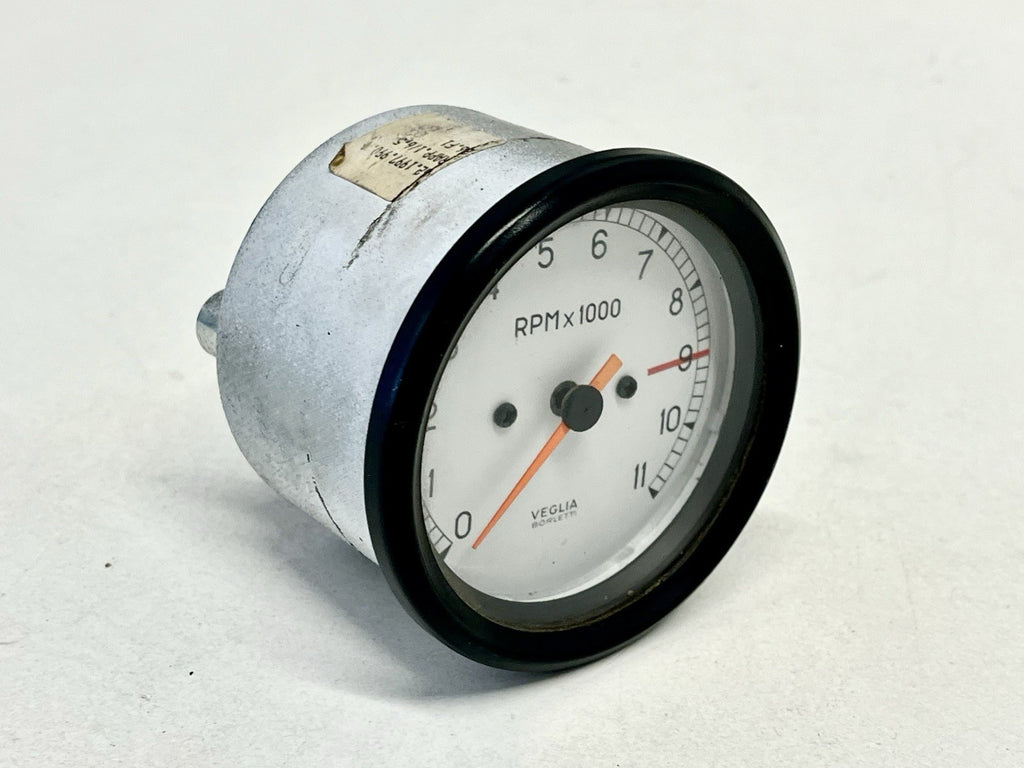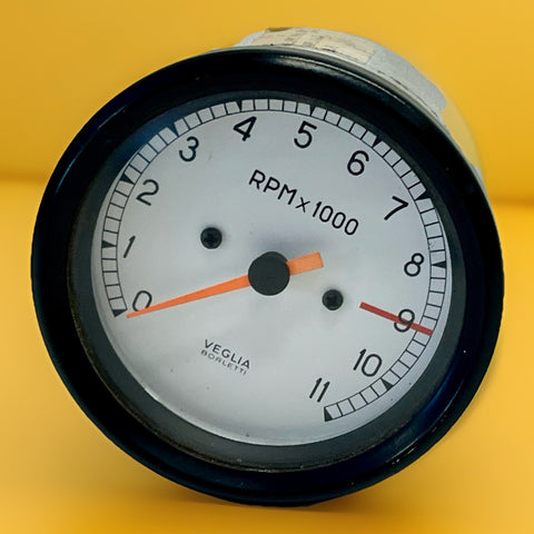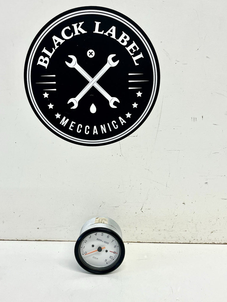 Used Ducati Veglia Tachometer Rev Counter. Designed for models from 888 851 900SS 750SS 91-98, this analog gauge features a vibrant fluorescent orange needle that stands out against its black dial for easy reading. Its backlit display ensures visibility even in low-light conditions, while the unit of measure displays RPM with precision.
