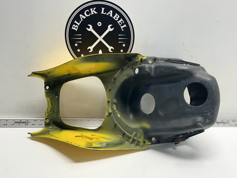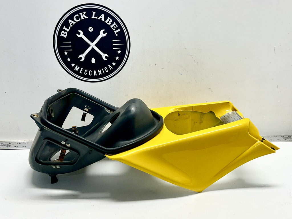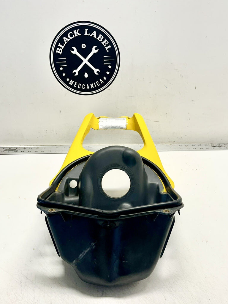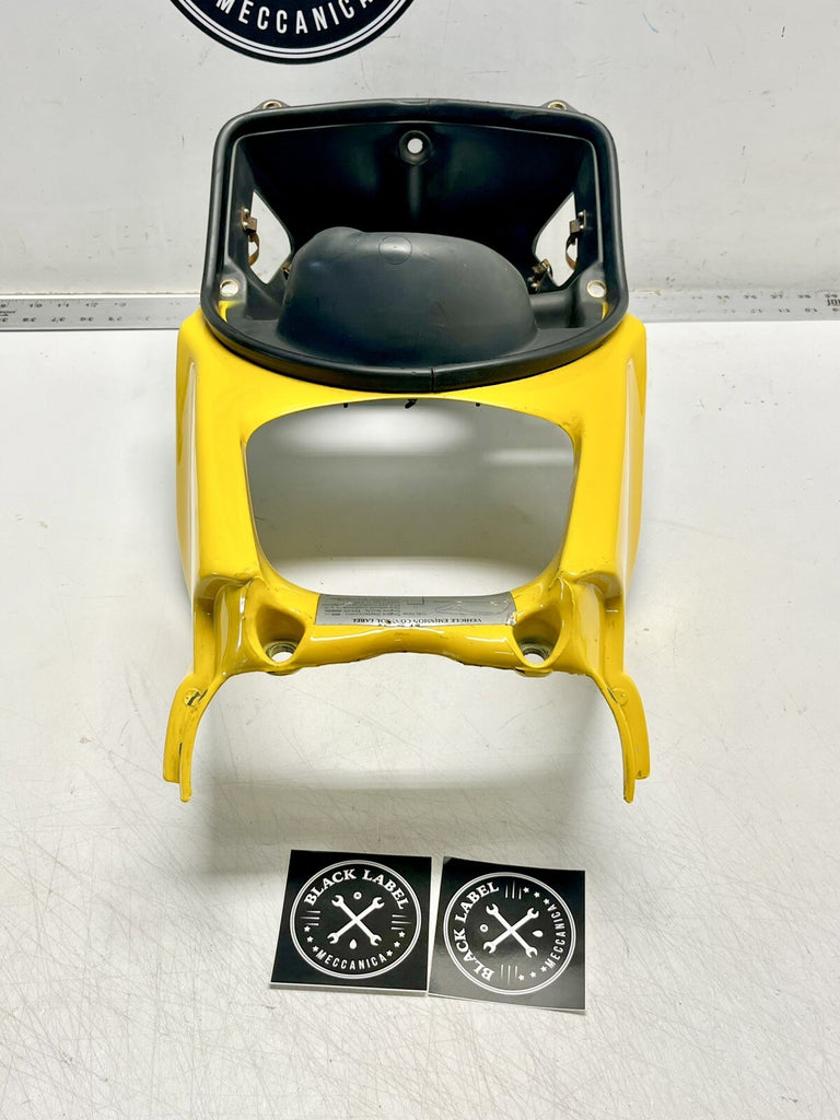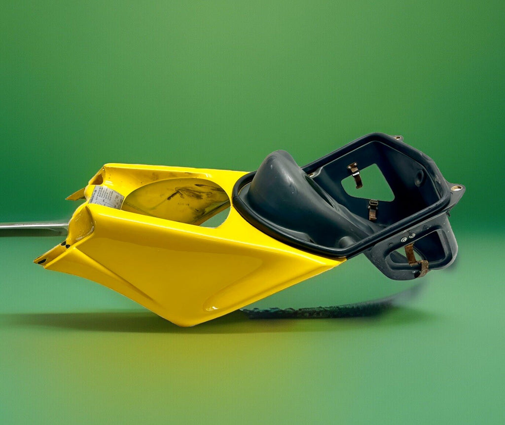 This is a genuine Ducati air box, factory yellow, made of ABS plastic. It fits perfectly on the front of the bike and comes with clips to seal it in place. The item does not come with any additional pieces and is made in Italy. It is a great addition to your motorcycle, enhancing its overall look. Get this high-quality air box for your Ducati 748, 916, 996, or 998 today!