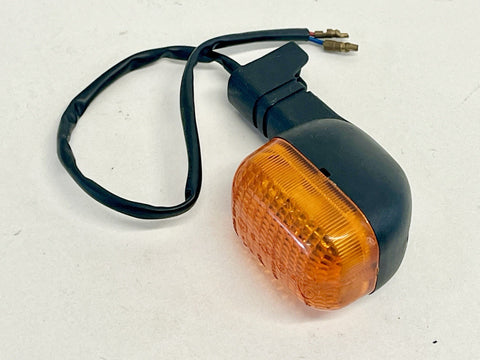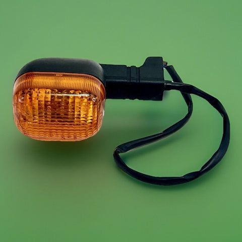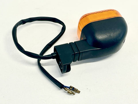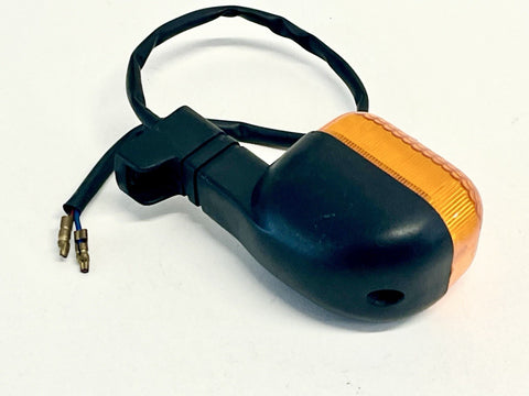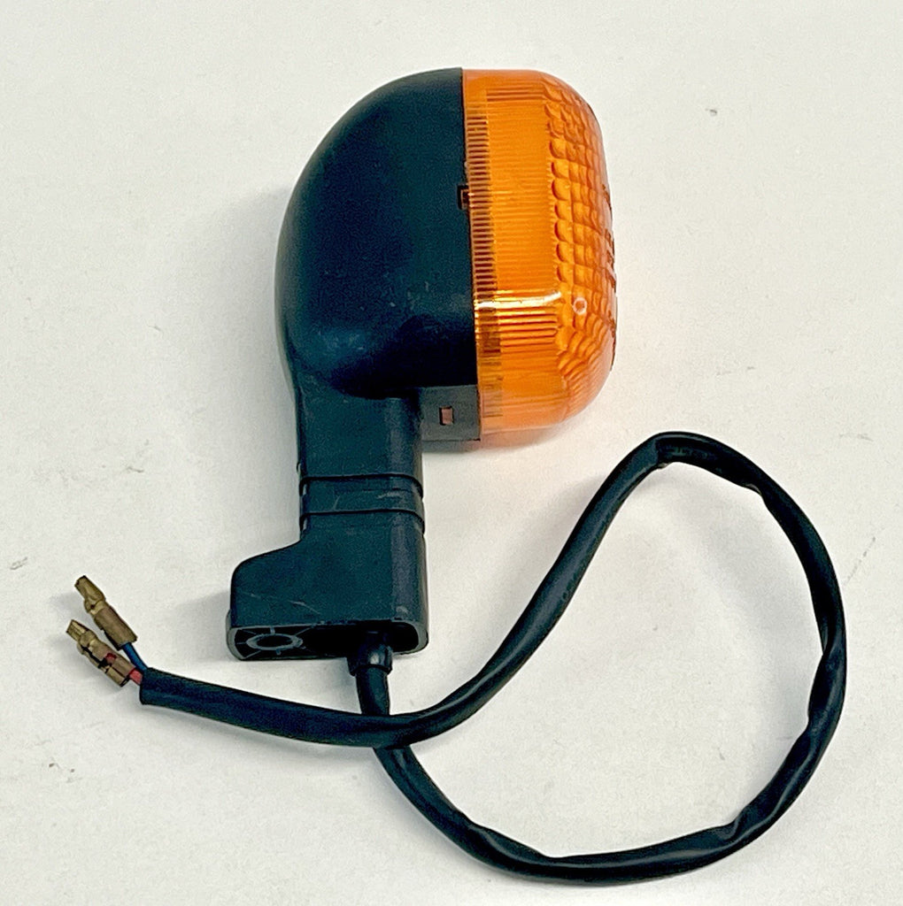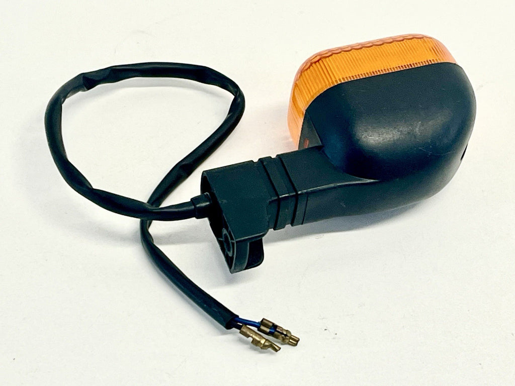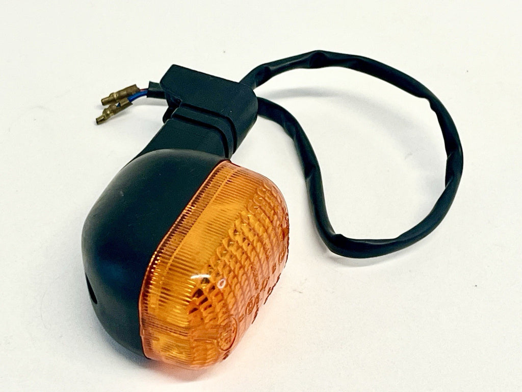 The product is a genuine Ducati 996 turn signal blinker indicator lens, designed for the rear right or front left position on a motorcycle. Made in Italy, the lens features an amber color with a halogen lighting technology. It is SAE-certified and includes a black housing with one bulb. This high-quality turn signal light assembly is a perfect fit for enhancing the visibility and safety of your Ducati motorcycle.