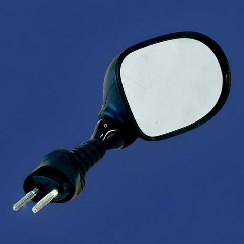 This black mirror is OE/OEM part number 52340081A and is made in Italy. It is a single-piece mirror assembly that is easy to install and fits perfectly on the right side of your motorcycle. Add style and functionality to your ride with this fantastic rear-view mirror.