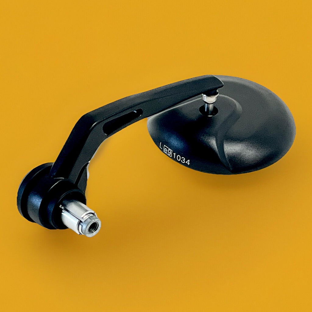 Enhance your Ducati Scrambler 800 Cafe Racer's functionality and style with this genuine OEM left bar end mirror. Crafted with precision in Italy, the mirror features a sleek black housing that complements your motorcycle's aesthetic. Made from high-quality aluminum and glass, it ensures durability and crystal-clear vision when navigating through streets.
