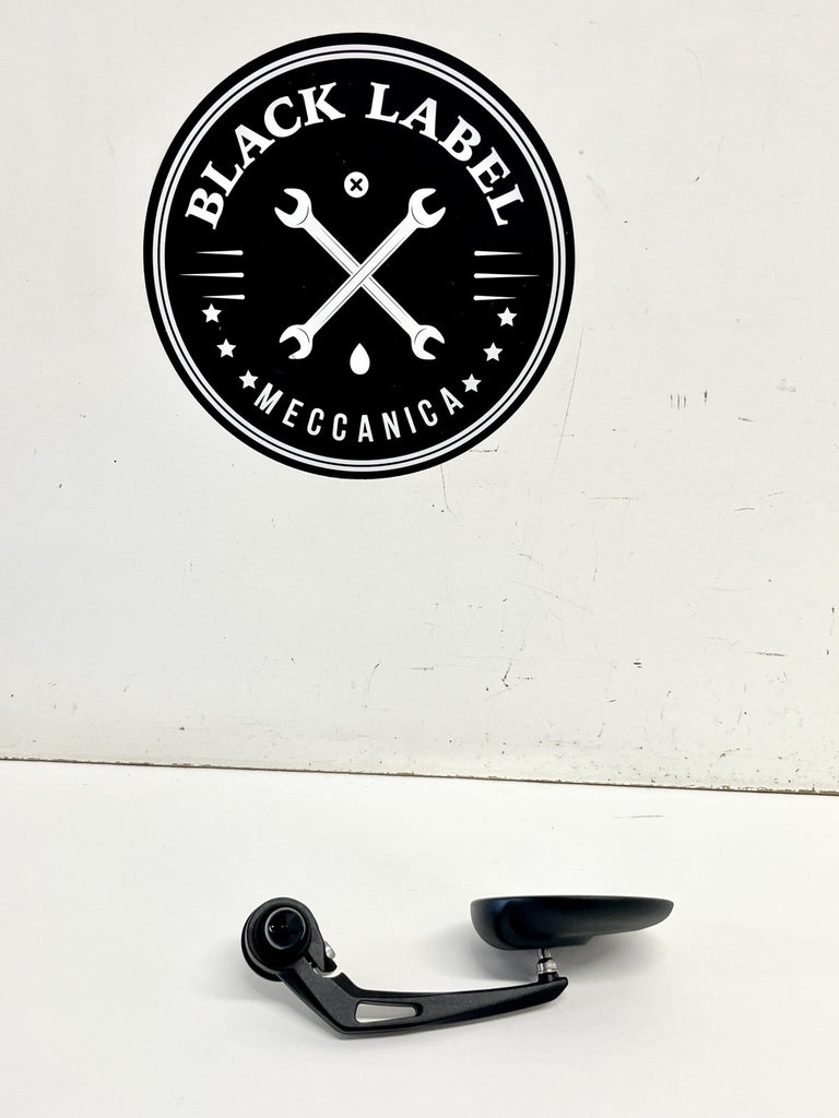 Enhance your Ducati Scrambler 800 Cafe Racer's functionality and style with this genuine OEM right bar end mirror. Crafted with precision in Italy, the mirror features a sleek black housing that complements your motorcycle's aesthetic. Made from high-quality aluminum and glass, it ensures durability and crystal-clear vision when navigating through streets.