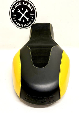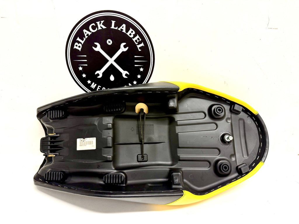 The Genuine Ducati Full Throttle Racing Seat Saddle OEM New 96880141A is a high-quality replacement seat designed specifically for Ducati motorcycles. Made in Italy, this seat features a striking black and yellow color scheme, adding a sporty look to your bike. With easy-to-clean features, this OEM seat is perfect for riders looking for both style and functionality. Whether you're replacing a worn-out seat or upgrading your bike's look, this Ducati seat is sure to meet your needs.