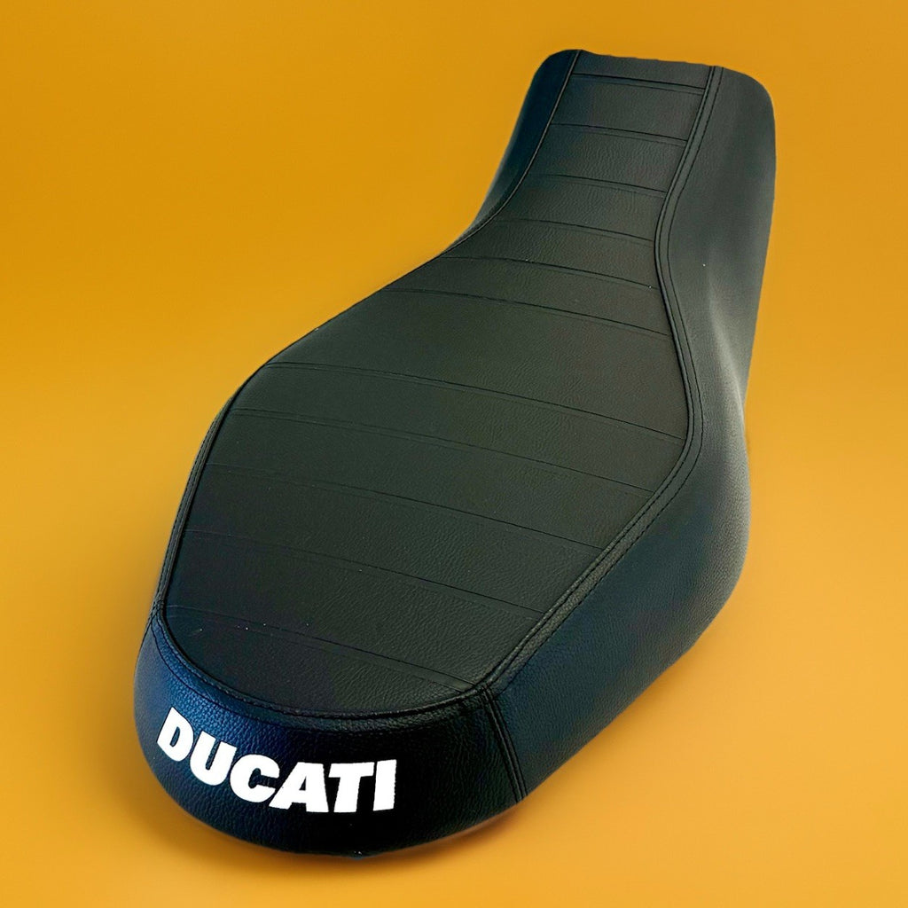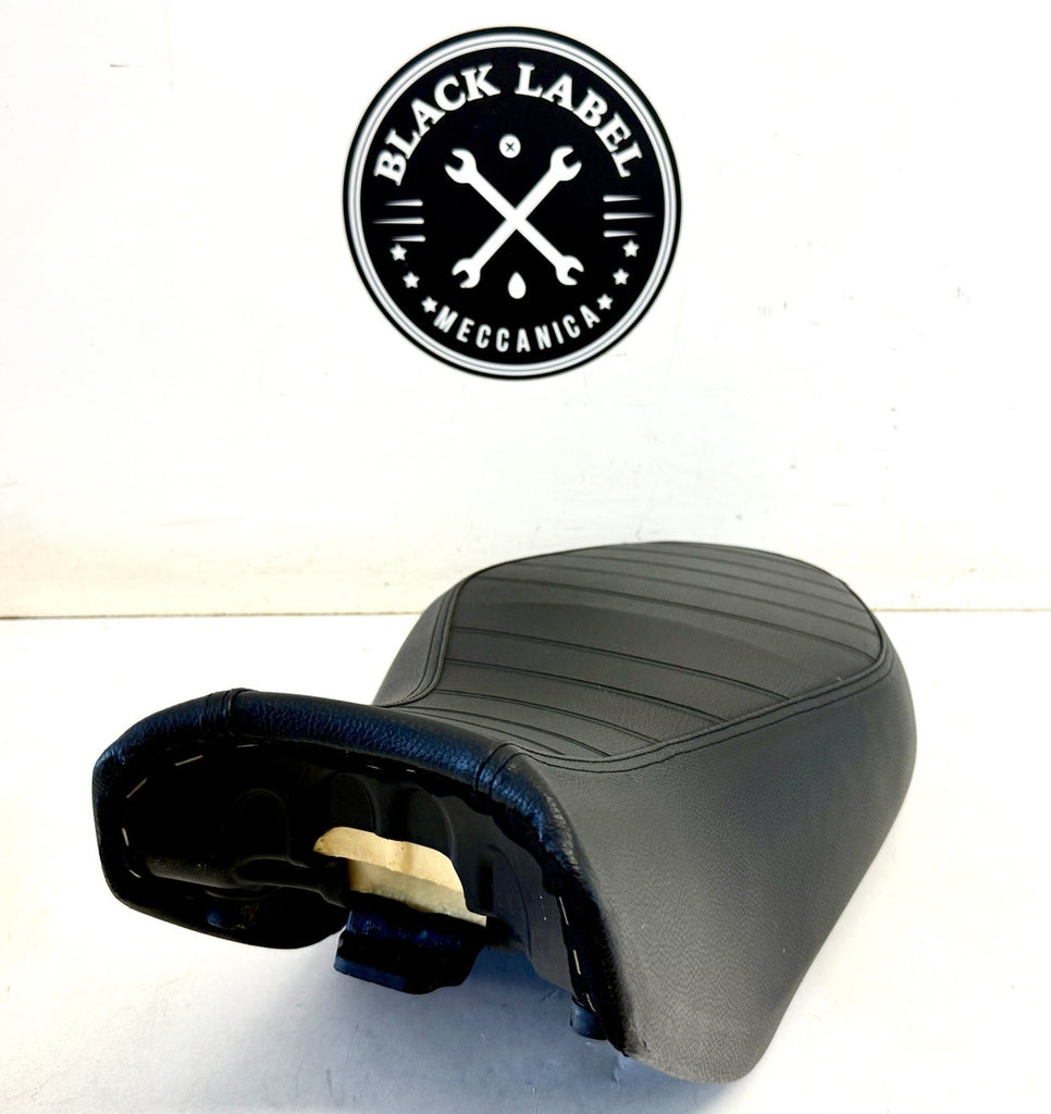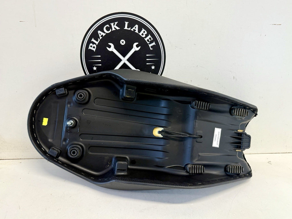 The Genuine OEM Ducati Scrambler 800 Icon Seat Saddle 59522491A 59610851B is a replacement seat designed specifically for Ducati motorcycles. Made of durable vinyl material in a sleek black color, this seat is easy to clean and is manufactured in Italy by the original equipment manufacturer. It is a genuine OEM part, ensuring a perfect fit and quality construction for your motorcycle. Ideal for the rear placement on the vehicle, this seat provides comfort and style for your Ducati Scrambler 800 Icon ride. Take off seat removed pre-delivery at dealer and replaced with comfort seat