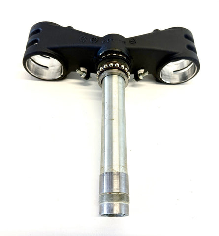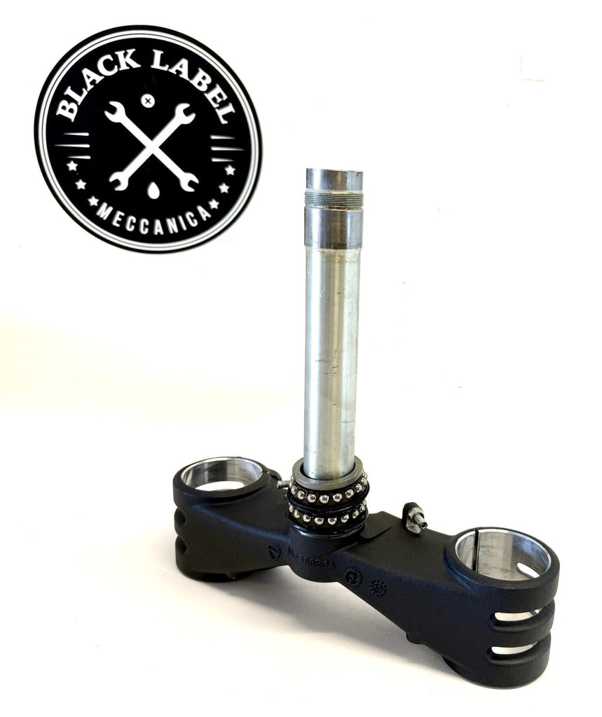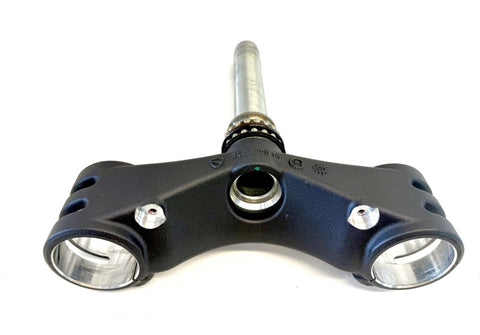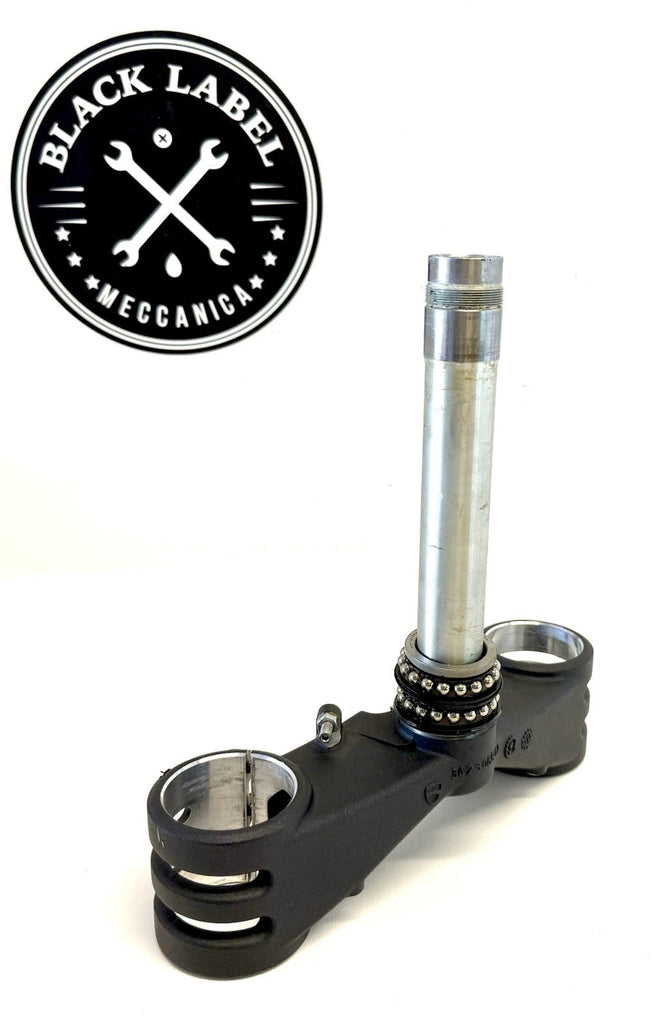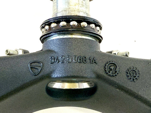 The product is a Ducati 12-19 Panigale Lower Triple Tree Yoke Clamp designed specifically for Ohlins forks. Made of aluminum in Italy, this front placement part is crucial for the proper handling and stability of the motorcycle. The OE/OEM part number is 34230681A, ensuring a perfect fit and quality construction for Ducati enthusiasts looking to upgrade their suspension system.