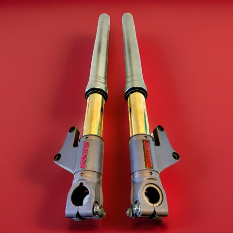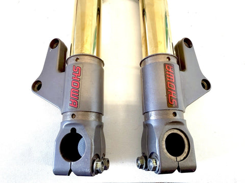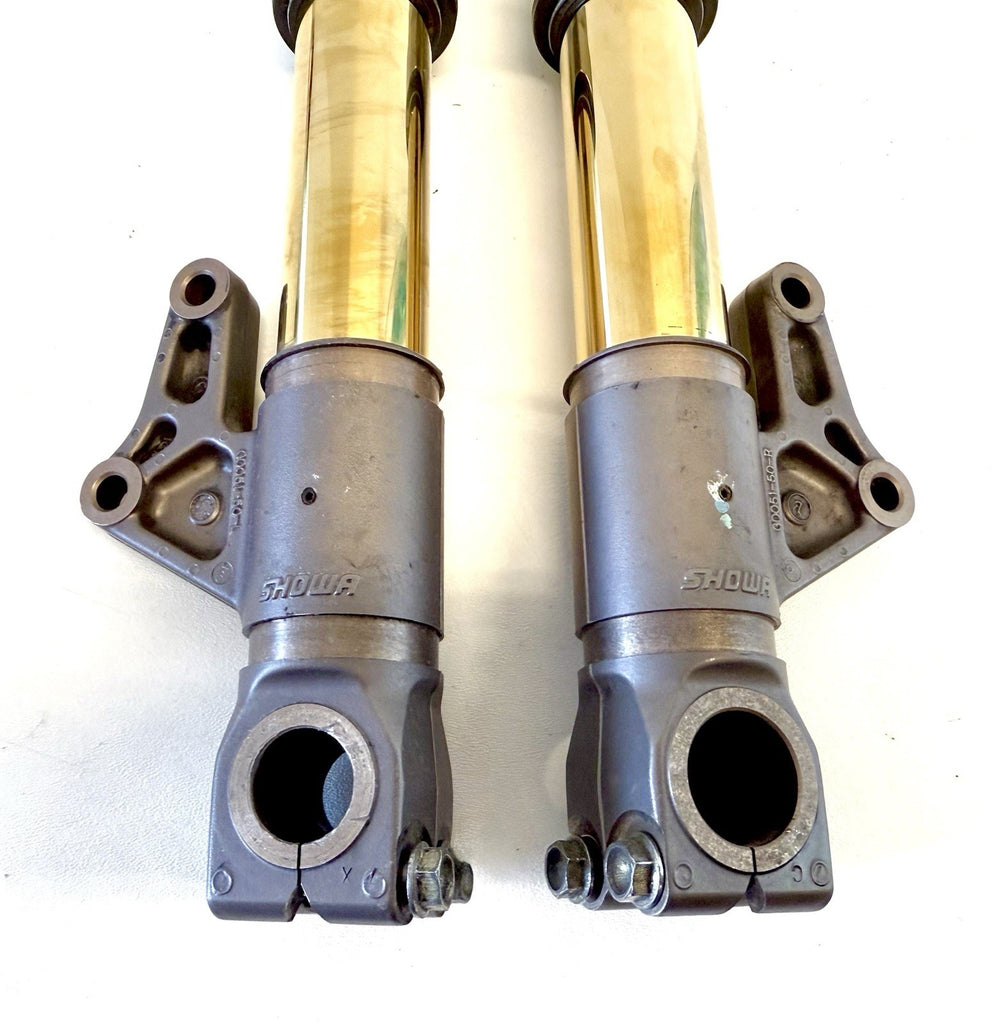 Genuine Ducati 748 916 996 998 Showa Forks Gold Nitride 65mm Caliper Spacing. These are used forks. 100% straight no damage . We recommend that you have any used for serviced before use due to age of the seals .