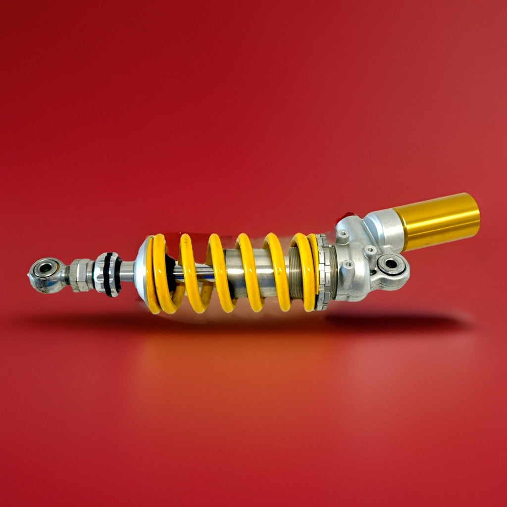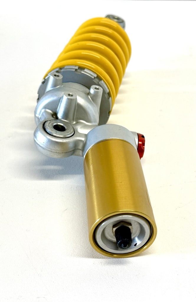 The Genuine Ducati 899-959-1199-1299 Panigale Sachs Rear Shock Absorber 36521464A is a high-quality rear shock designed for Ducati motorcycles. Made in Germany, this shock absorber is an original equipment manufacturer part specifically designed for the rear placement on the vehicle. It comes with the necessary items included for a complete installation, ensuring optimal performance and handling for your Ducati bike. Built to the highest standards of quality and durability, this Sachs rear shock is a reliable and essential component for any Ducati enthusiast looking to enhance their motorcycle's suspension system.