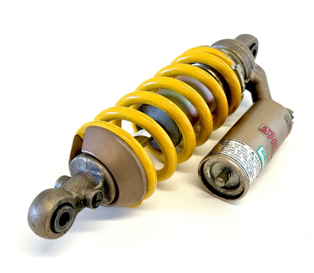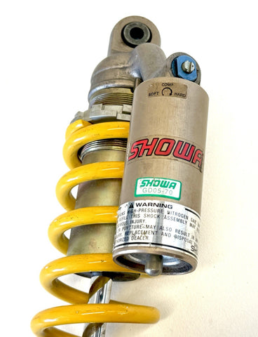 This is a genuine Showa rear shock and coil spring assembly designed to fit Ducati 748, 916, 996, and 998 models. Made in Japan, this adjustable shock features a 13-inch length and is perfect for enhancing the suspension and handling of your motorcycle. The shock and coil spring come with all the necessary items for installation, and the brand is well-known for its high-quality performance and durability. Upgrade your motorcycle's suspension system with this Showa shock and coil spring assembly.