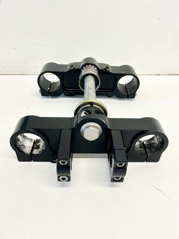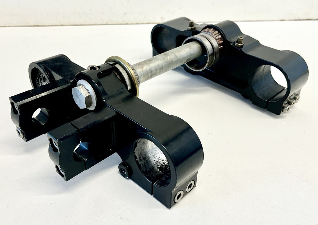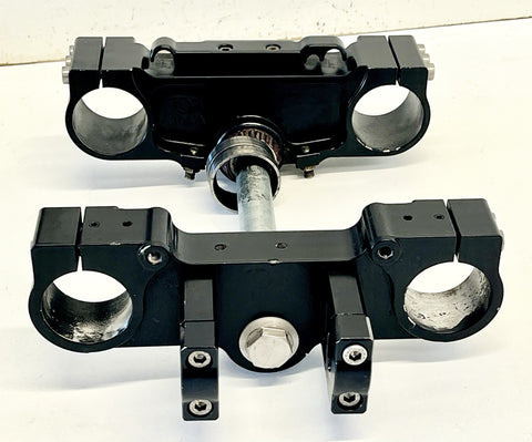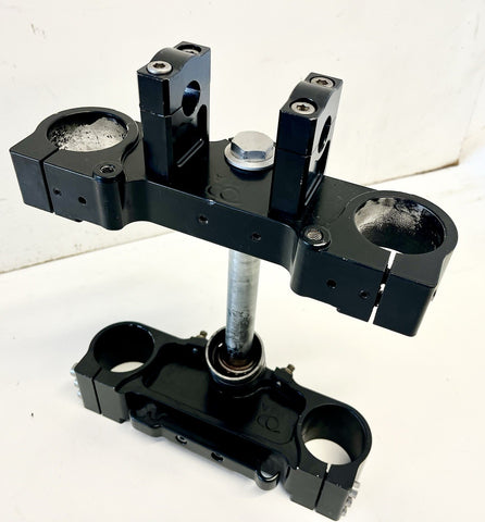 The IMA Billet No Offset Triple Clamps are high-quality aluminum components designed specifically for Ducati Monster 900 and 750 models from 1993 to 2001. Made in Italy by IMA Special Parts, this set includes a lower tree clamp, upper tree clamp, steering stem, mounting hardware, handlebar riser mount clamp, and bearing.