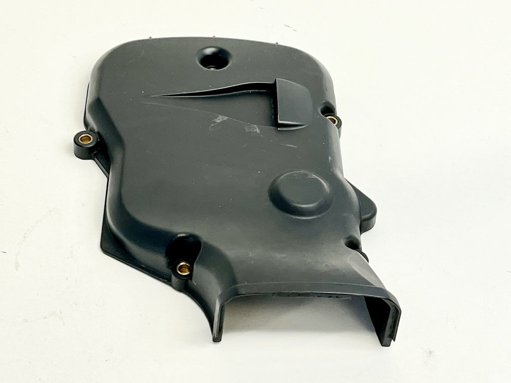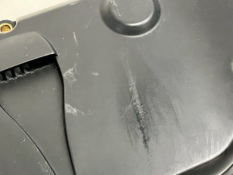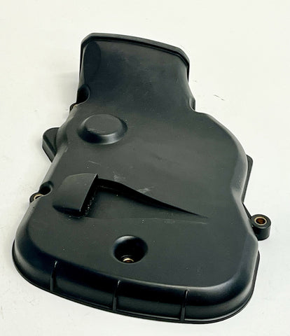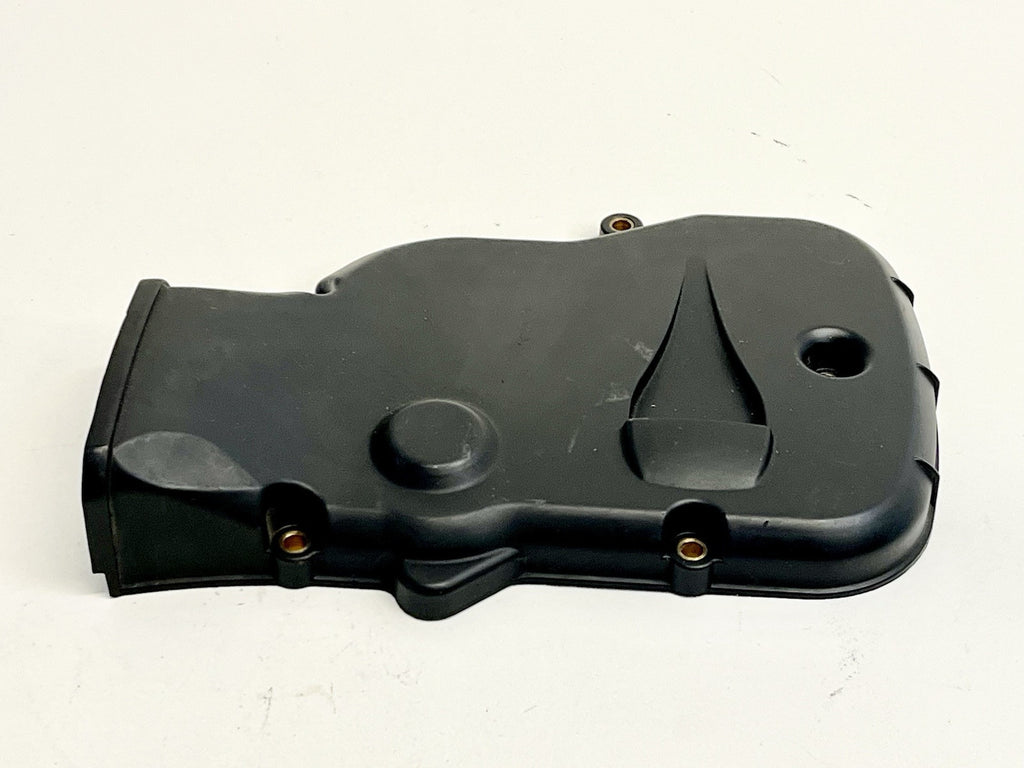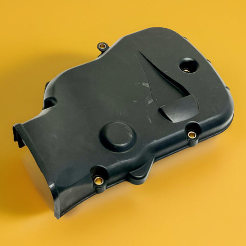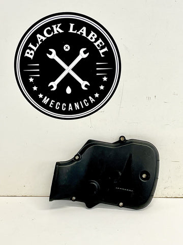 This genuine Ducati vertical cylinder head timing cover is a used item that fits the 749 and 999 models from 2003 to 2007. It is made of black plastic. The cover is an OEM part with the number 24510611A and was manufactured in Italy. This timing cover is a great replacement part for your Ducati.