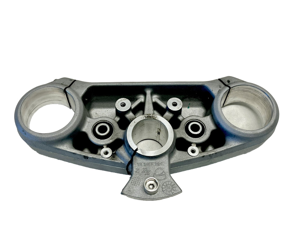 This genuine Ducati upper tree clamp, part number 34131141A, is compatible with street motorcycles like the XDiavel. Made of aluminum, this painted triple tree clamp is in great condition and ready to be installed on your front suspension. It was carefully removed from a used XDiavel and is being sold as an individual item with no other parts included.